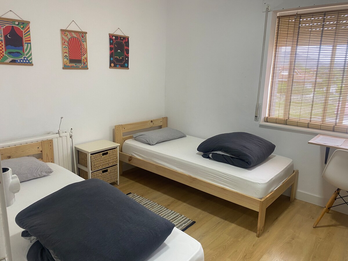 Esta habitación comparte baño con otra. Pero tenemos un aseo y otro baño completo adicional.Al lado del funicular de Artxanda que te deja en el centro de Bilbao en menos de dos minutos. CONTAMOS CON CUNA PARA BEBE. Reservando todas las habitaciones tenemos capacidad para 12 personas. (Mas personas consultar) Nº DE LICENCIA-BI-53.