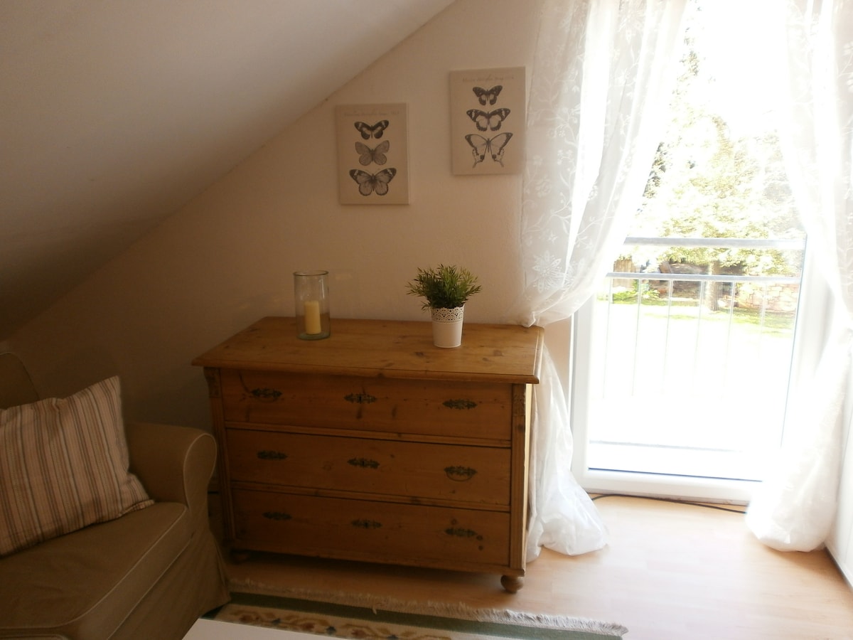 Unsere sehr ruhige Mansardenwohnung im Einfamilienhaus mit bequemen großen Bett, Sofaecke und Küche bietet einen erholsamen Schlaf in ruhiger ländlicher Gegend. Zum Badesee mit freiem Eintritt sind es 10 Gehminuten. Thermenregion Geinberg, Bad Füssing Für Spatziergänge am Inn (5 min zu Fuß) oder Radtouren optimal! Kurtaxe 2,40€ pro Person/Nacht.