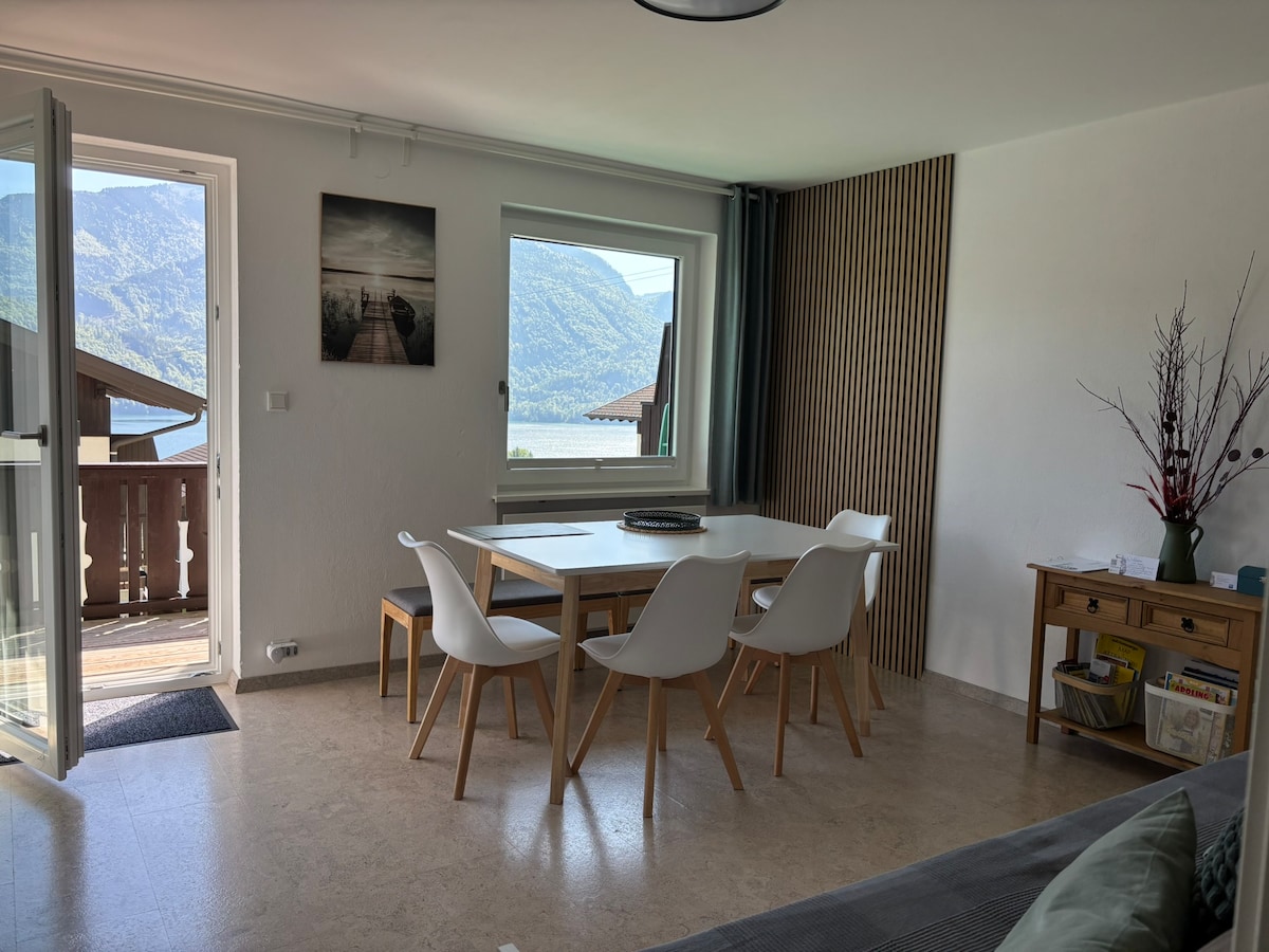 Enjoy your vacation with family or friends at this peaceful, stylish place. A 2-bedroom freshly renovated apartment with a spacious living room awaits you in St.Gilgen (Laim). Start your morning with a coffee on the balcony with breathtaking view to lake Wolfgangsee and the surrounding mountains. Away from the crowds still closeby (12 min walk to the lake). Relax at the lake, walk in the forests, enjoy the fresh alpine air, bike along the valley, take the cable car or a train the mountain peaks.