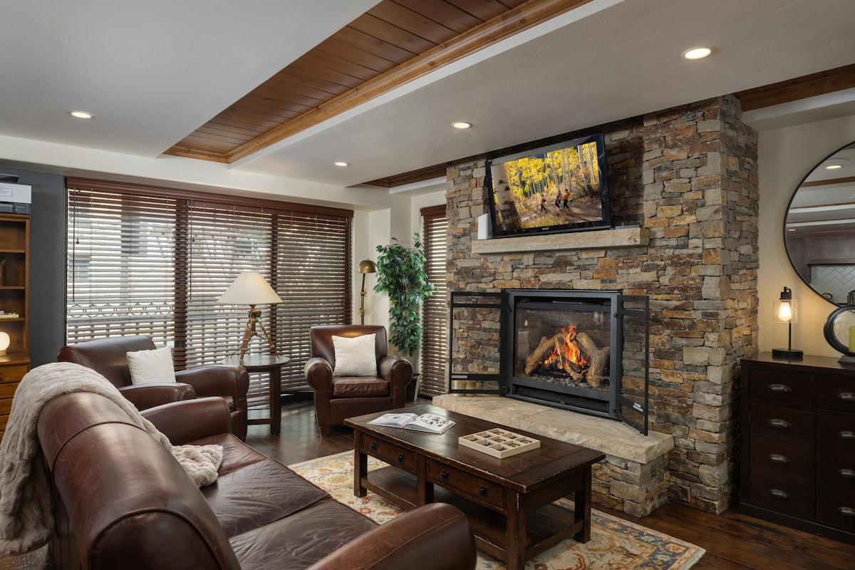 Location, location, location! Enjoy this open-concept condo at the base of the mountain in Aspen. After a day on the hill (whether skiing or hiking), return to this cozy condo for some time spent off your feet. Thaw out by the double-sided fireplace warming both the bedroom and living room. The condo is very inviting with a King bed, Queen sleeper sofa, in-unit washer and dryer, and an upgraded, full size kitchen. Enjoy the comfort provided by the 2 newly installed mini split AC units.