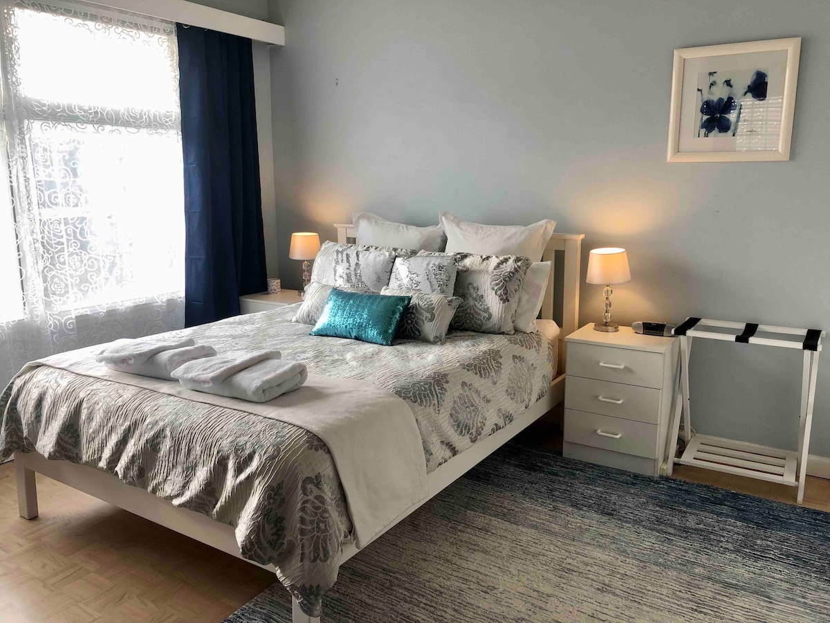 **Rare Vacancy between 22nd - 30th Nov - and 8th -15th Dec! BEACH, WATER VIEWS & Netflix - with a spa bath to soak in! This apartment has aircon for summer & a cosy fire for winter. Queen bed in master & 2 singles/king bed in 2nd bedroom, with luxury linen. My place is not new but full of character & charm in white & blue mediterranean tones. It's your perfect beach spot with a balcony & walking distance to many great restaurants. As a super-host, I welcome you!