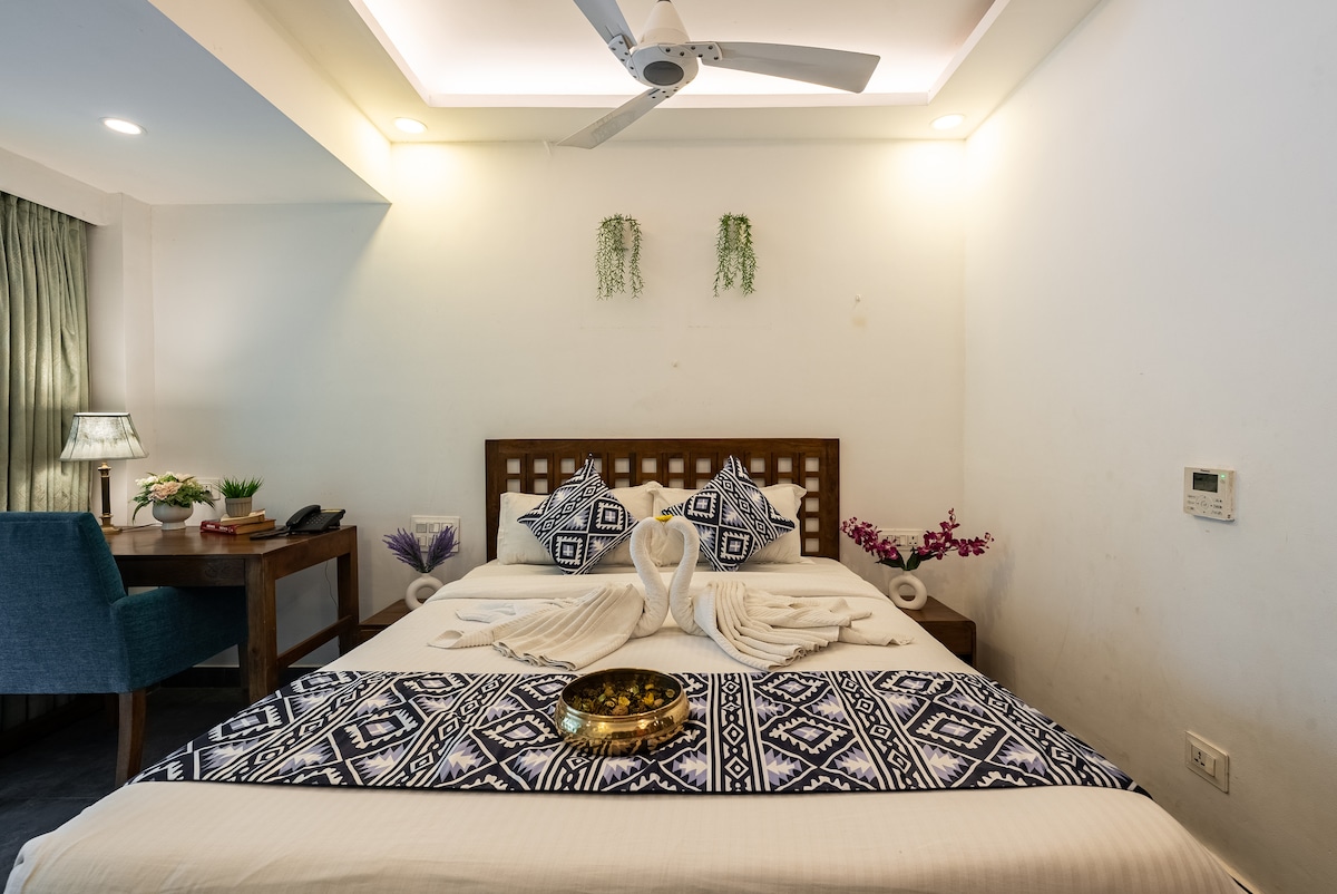 These are 2 units of our luxury semi studios with pool in our boutique hotel that combines style with simplicity to give you that ‘at home’ feeling you crave. Each featuring a large comfy bed you’d love to sink into, delicious food and visual delights everywhere, These rooms promise to capture not only your eyes but your heart. Located in the heart of North Goa 5 mins from Mall De Goa all other hot spots including beaches, party spots, historic places etc are at a distance of approx 5-15 kms.