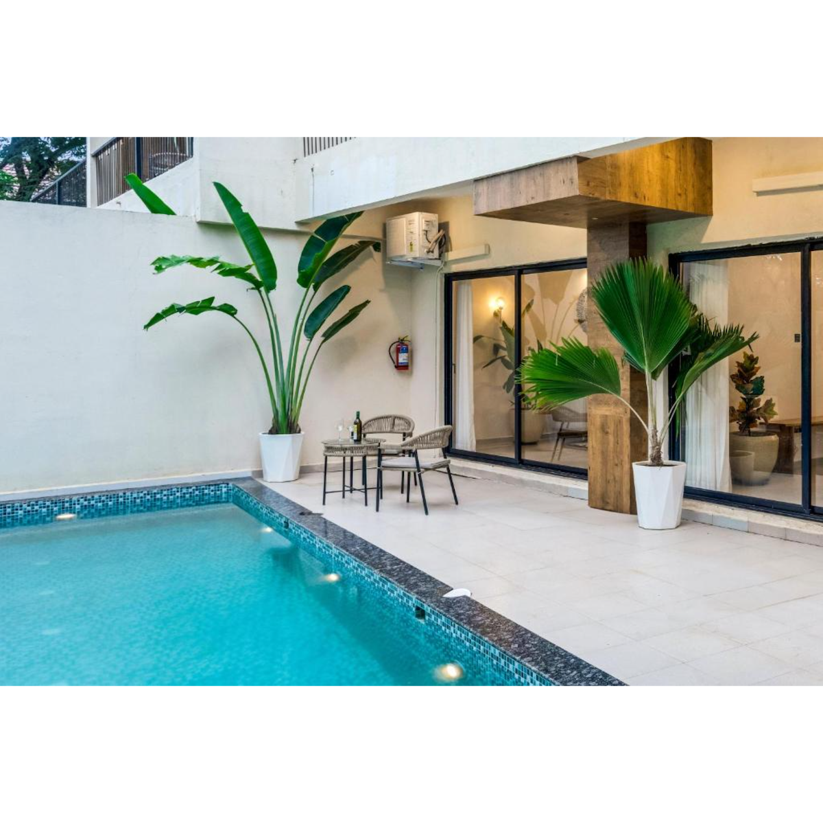 Luxury Ultra-Spacious Room with Pool in Central Calangute Experience Goa in style! This warm, spacious, and classy fully-furnished luxury room is located in the very heart of Calangute, featuring a refreshing swimming pool. Enjoy a large bedroom with a private attached bathroom and ample space to relax. The famous Calangute Beach is just a short walk away, offering fantastic views! Calangute Beach: 1.4 KM Baga Beach: 3.3 KM Anjuna Beach: 7.7 KM