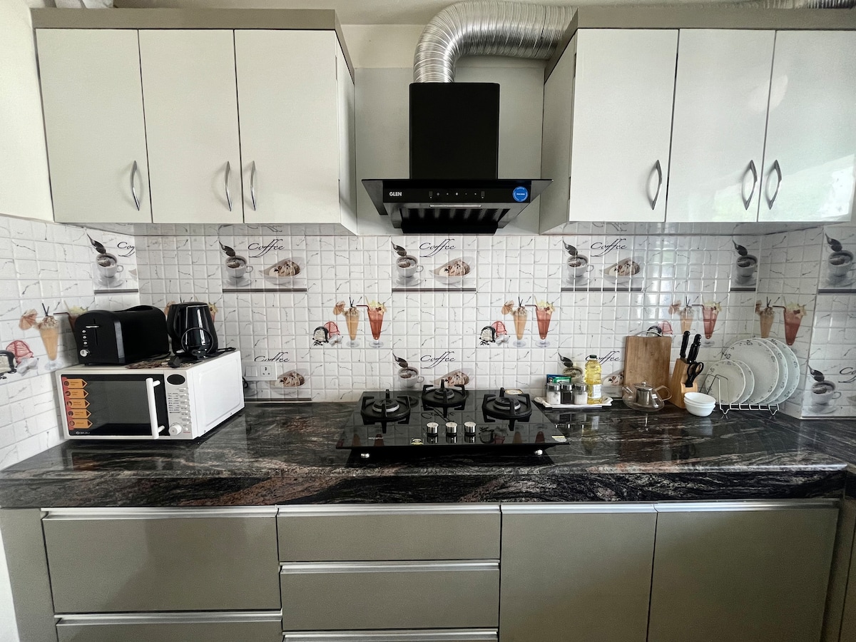 Welcome to Greenfield , an airy, sunlit retreat with constant breeze and sweeping views of the new airport terminal, right across the street. Perfect for plane spotters and bird watchers alike. Nestled in a safe, quiet residential society with easy access to the city via Dharapur Road. Ideal for peaceful getaways, work trips, or nature lovers looking for a breath of fresh air.