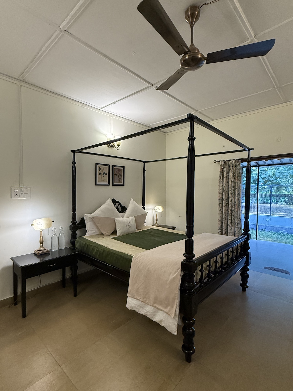 An independent cottage for short term rental. Two bedrooms + attic space. Two indoor and one outdoor bathrooms. Living room and a kitchen with a sitting space. Fully furnished. Adequate space for two four wheeler parking inside the premises. Separate fire house (traditional house) outside the cottage. Spacious compound - patio, lawn, gardens and a fish pond.