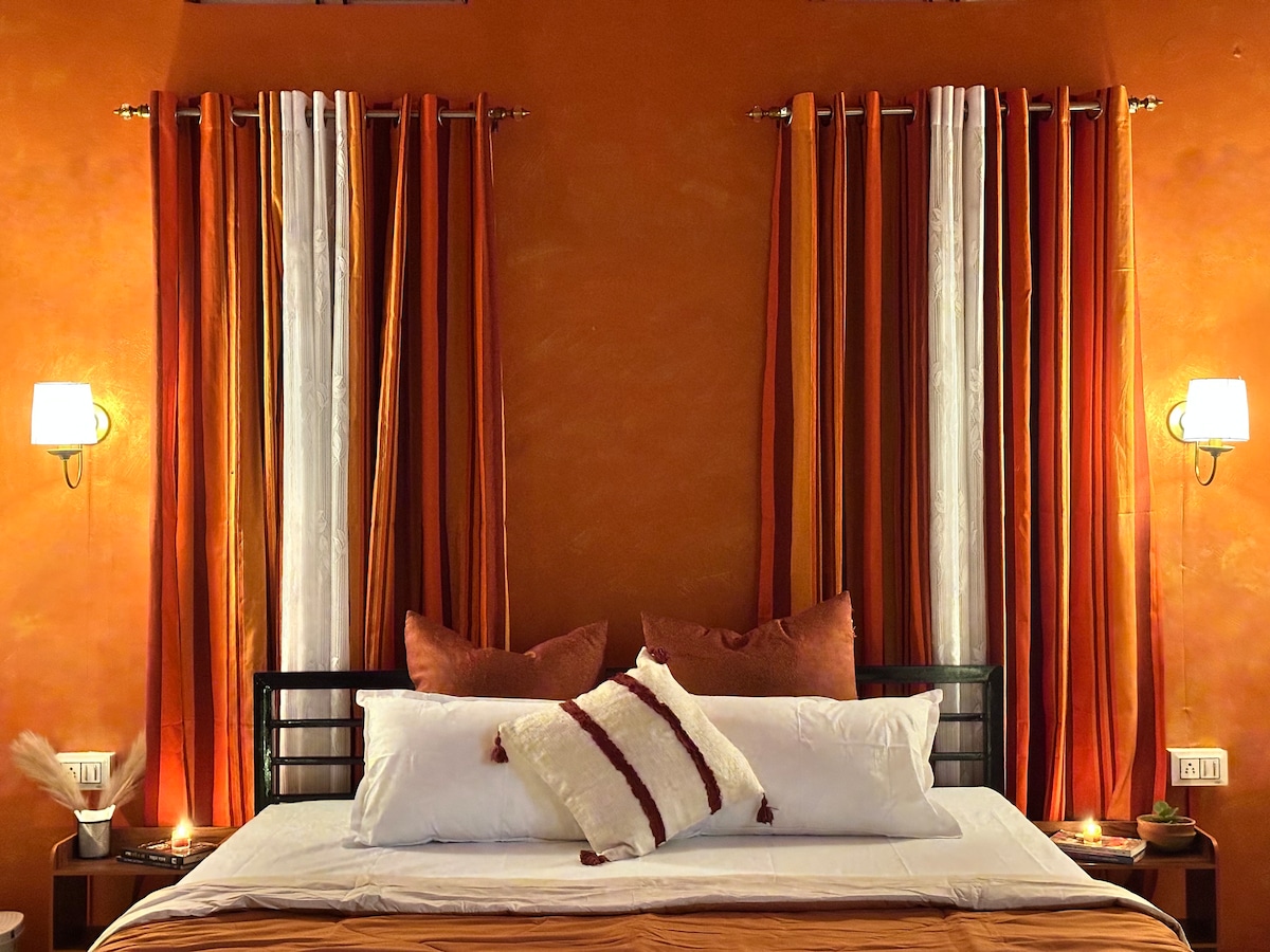 Welcome to The Bihpuria Address. The Rust Room is a warm, earthy space with soft lighting. Guests also enjoy access to thoughtfully designed shared spaces, including a modern living room, fully equipped kitchen, and dining area. The property offers additional experiences with an on-site restaurant, boutique café, rooftop space, and a peaceful garden. Located in Bihpuria Town, we offer the convenience of town access while still providing stunning 360° natural views and a tranquil atmosphere.