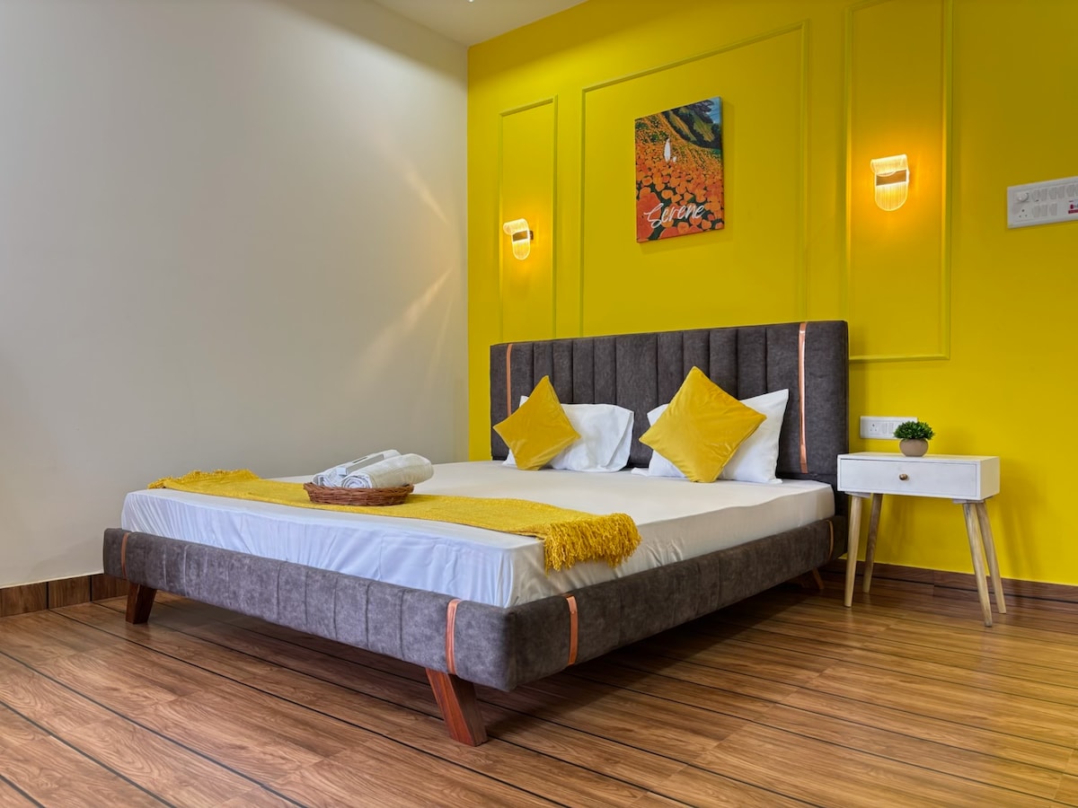 Step into a warm and thoughtfully designed 3BHK retreat in Shillong, styled with soft earthy tones, handcrafted wooden furniture and cozy boho accents. The apartment offers a spacious living room, serene bedrooms with hotel-style bedding and a charming dining nook with a live-edge wooden table. Soft lighting, curated décor and peaceful surroundings make this the perfect space to relax, unwind and feel completely at home. Perfect for couples, families or anyone seeking a peaceful mountain escape.