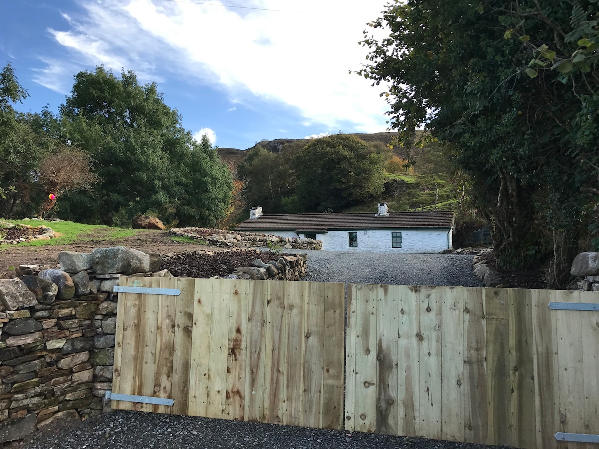 Harben Cottage is a 150 year old traditional stone cottage - 5mins drive from the Heritage Town of Ardara (20mins walk). Set amongst lush green hills & sitting next to a bubbling mountain stream. A mixture of new and old; low doorways, a turf fireplace, water supplied from a mountain spring, but also a gas cook top, oven, microwave, WIFI, & central heating. NB: that the toilet & shower are housed in outside annex - this may not suit everyone but adds a touch of authenticity for the brave!