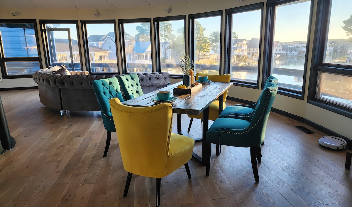 Wake up to shimmering Chincoteague Bay views in this modern waterfront escape on Virginia’s Eastern Shore. Spend mornings on the water, afternoons by the fire pit, and evenings under glowing sunsets. Kayaks, bikes, pools, golf, pickleball, and trails are moments away, with beaches a short drive. Bring the dog, unplug, and settle in. Your coastal reset starts here.