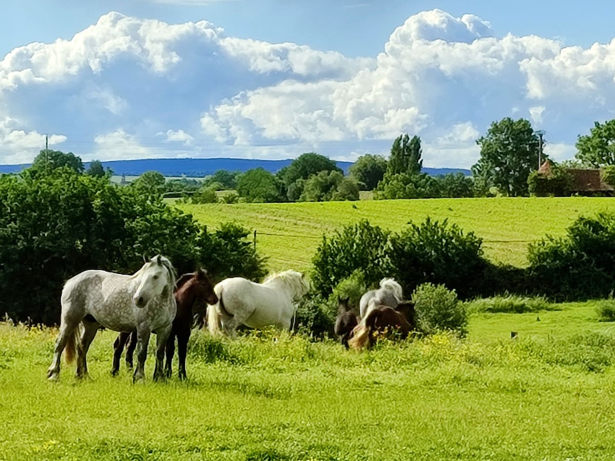 Dans le Parc Régional du Perche, à côté de la Perrière, nous avons trouvé notre havre de paix et bonheur, en parfaite harmonie avec la nature magnifique de ces lieux. La maison d'hôtes est dans le jardin, juste en face de la maison principale où nous habitons toute l'année, entourés par les prairies, la forêt et les chevaux percherons.