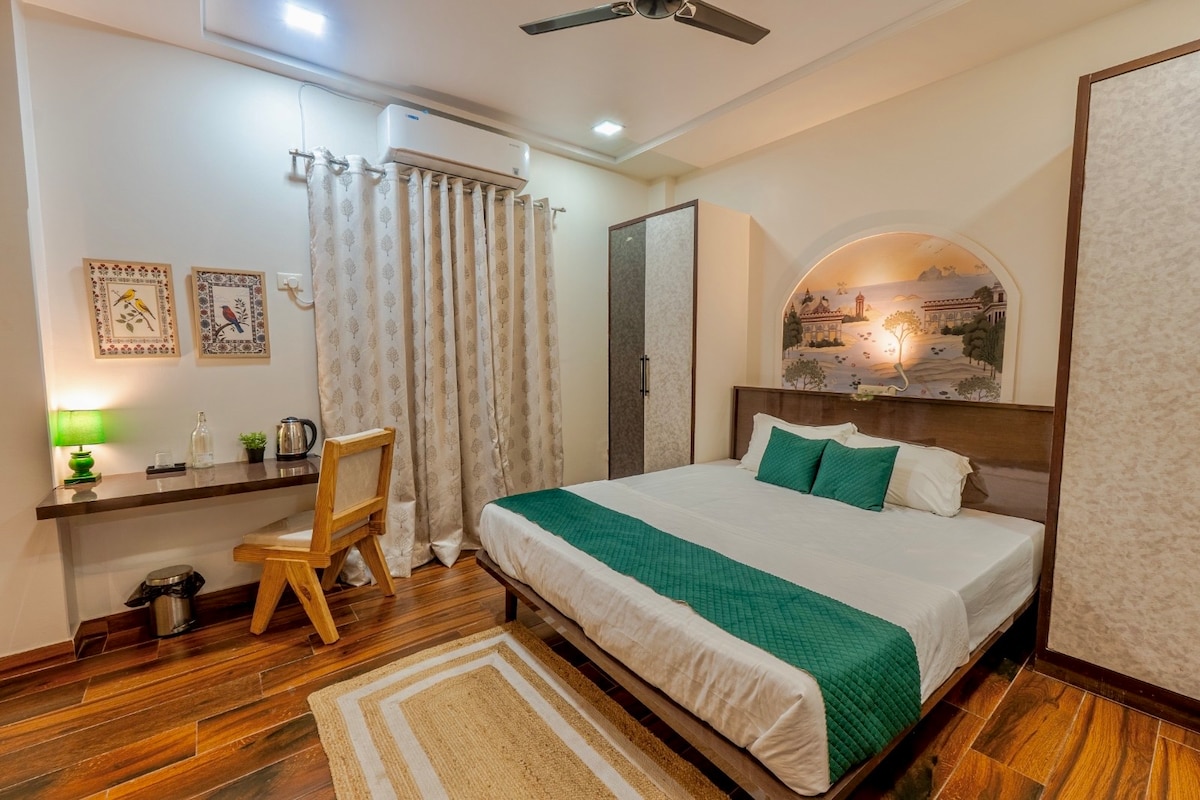 Modern boutique suite in a peaceful colony, just 10 mins from Kashi Vishwanath, Assi Ghat & Sankat Mochan. ✔ Queen size bed with attached bathroom ✔ 43” Smart TV & high-speed WiFi ✔ 1.5 ton 5-star AC ✔ Workstation & balcony for work/relaxation ✔ Fully equipped kitchen + meals by trained cook ✔ 24×7 caretaker & inverter backup ✔ Safe, central location with car parking Ideal for pilgrims, families & business stays.