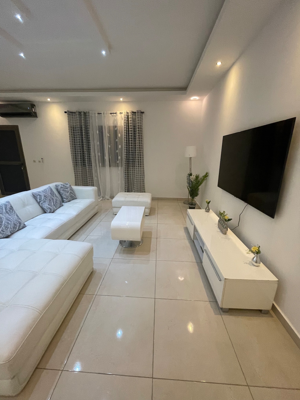 Située dans la commune de Grand-Bassam, à quelques mètres de la cathédrale Saint-Esprit, cette splendide, reposante , spacieuse résidence, au design épuré, parfait mix entre modernisme et tradition ivoirienne sera votre havre de paix et de douceur tout au long de votre séjour dans l'ancienne capitale ivoirienne. Pouvant accueillir 4 visiteurs, elle bénéficie d'un ascenseur fonctionnel, d'une splendide piscine au rez de chaussée, d'une place de parking, d'une surveillance CCTV et gardiennage.