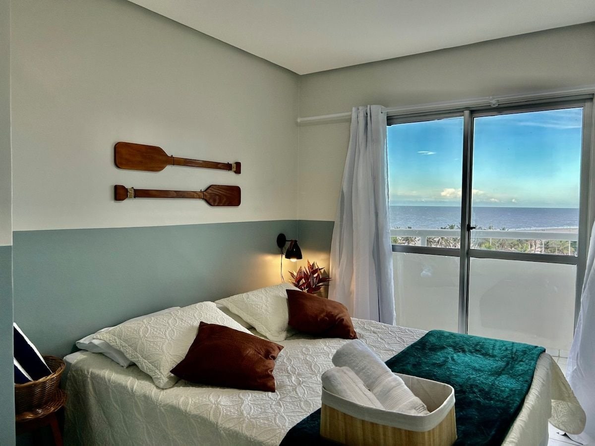 Viva a experiência de se hospedar em um apartamento novinho, moderno, próximo a praia e totalmente equipado, perfeito para até 4 pessoas. Todo planejados com: 🛏 1 cama de casal confortável 🛋 Sofá-cama macio( cama Herval ) 🍳 Cozinha completa para suas refeições 🌬 Ar-condicionado 🌊 Vista linda para o mar Além do charme do apartamento, você poderá aproveitar áreas comuns dignas de um resort: Academia Piscina com vista Mercado dentro do prédio Sauna Brinquedoteca Estacionamento