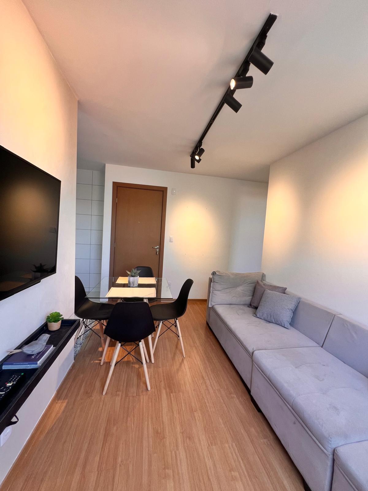 Nosso apartamento é ventilado, confortável e funcional. Possui Wi-Fi, sala com sofá e tv e uma mesa de jantar. A cozinha é muito bem equipada com geladeira, cafeteira, liquidificador, air fryer e fogão. Os 2 quartos possuem ar-condicionado, sendo 1 suíte, banheiro social e área de lavanderia com máquina de lavar. Conta com 1 vaga na garagem, área de lazer com piscina, academia e espaço infantil no condomínio e portaria 24h. Localizado a 13km do aeroporto e a 13km do centro histórico.