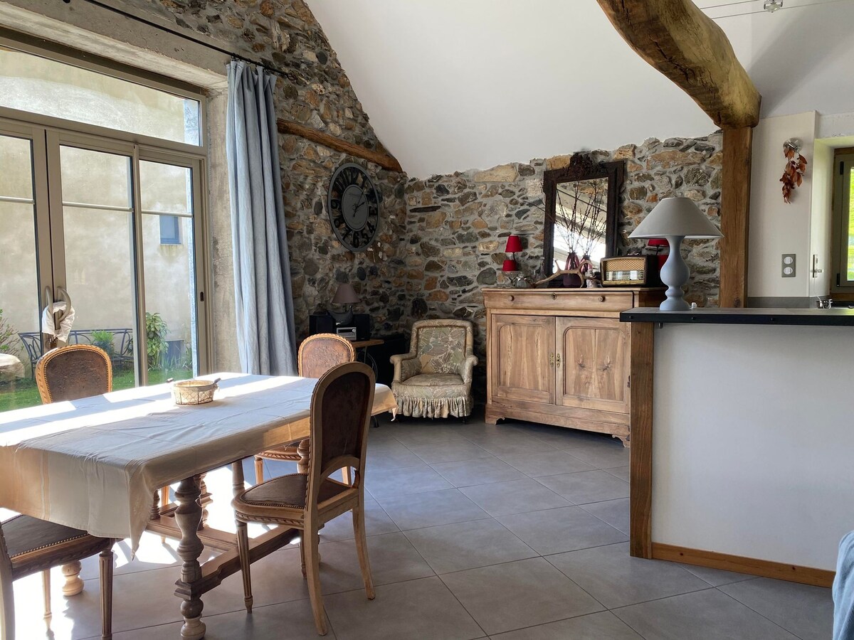 Casa rural de 90 m2 construida en 2 niveles. En la planta baja se encuentra el salón y su chimenea, la cocina y los aseos. En el primer piso, hay dos dormitorios (cada uno con una cama doble), una sofá cama y un baño (con bañera). Terraza con vistas magníficas a las montañas. Lavadora, vajilla y utensilios de cocina, material para bebés (Trona, bañera y cama plegable). La antena de TV no funciona pero es posible reproducir DVDs. Está incluida la ropa de cama. No se incluye las toallas.
