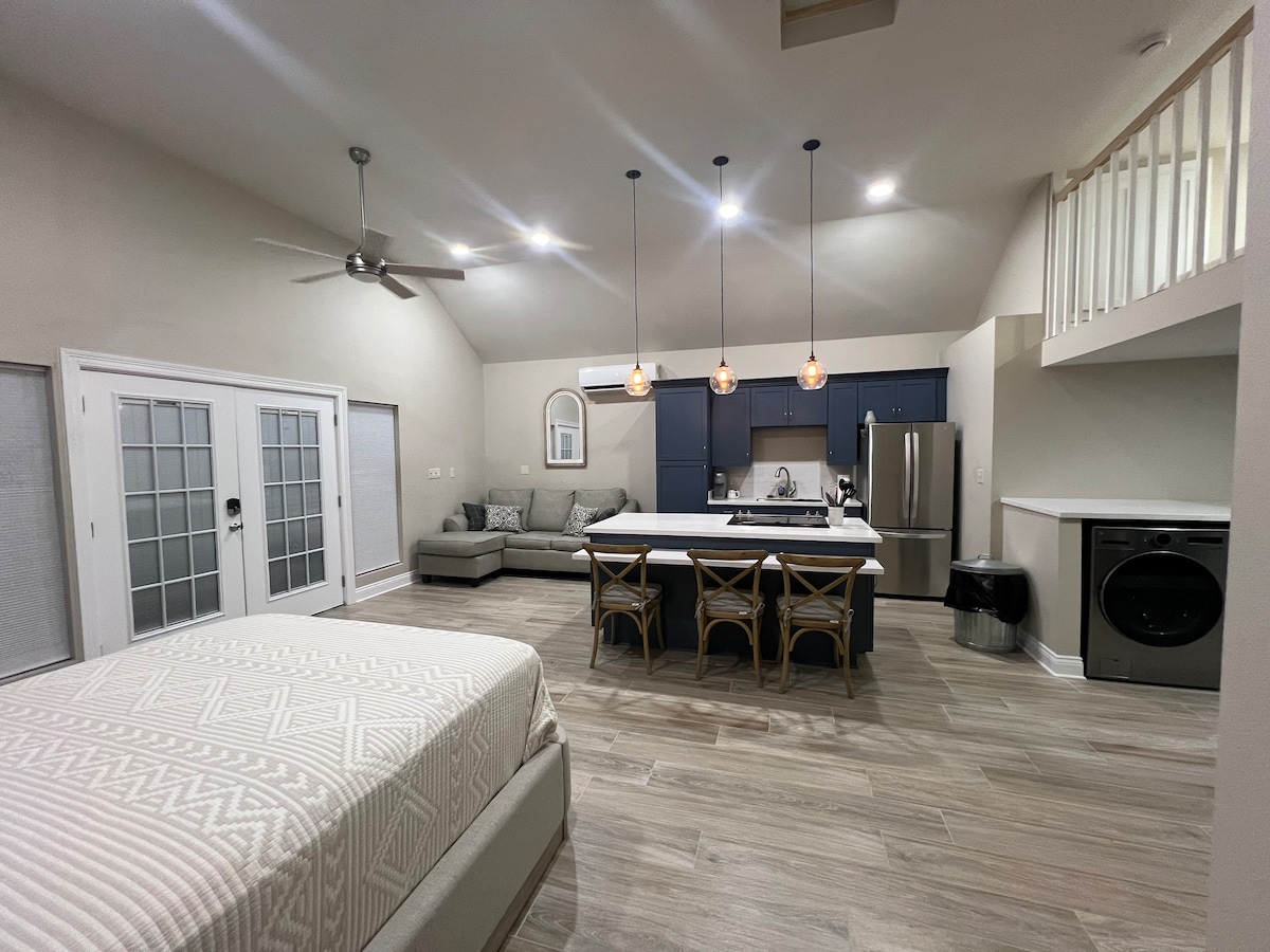Located on 20 acres of lush, Louisiana land - you will find yourself immersed in the richness and beauty of the Southern Louisiana landscape. A private road will lead you to your secluded destination -“Twin Oaks-Barn”– tucked amidst the 100+ year old oak and cypress trees. Gaze at the egrets roaming the field in the morning as you sip a cup of coffee in the breakfast nook. Or sit a spell under the oaks and take in a beautiful sunset, in the evening soundscape of cicadas.
