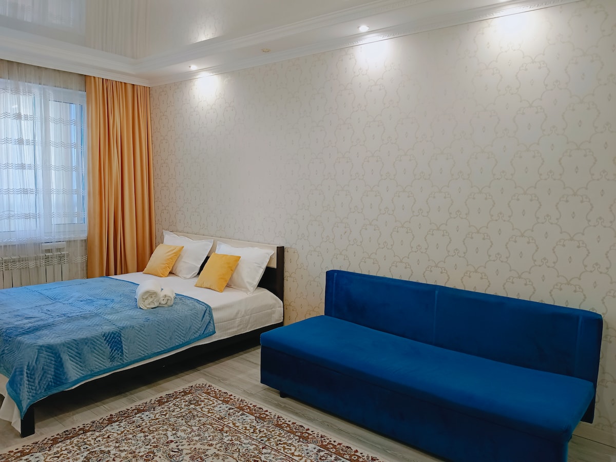 Элитные апартаменты расположен в Астане, в 4,4 км от монумента «Байтерек». К услугам гостей апартаменты с Wi-Fi, кухней, собственной ванной комнатой и телевизором с плоским экраном и спутниковыми каналами. «ЭКСПО-2017 Астана» находится в 8 км, а до мечети «Хазрет Султан» менее 1 км. Дворец Независимости находится в 5-7 минутах ходьбы. Расстояние до аэропорта Нур-Султан составляет 22 км. Расположение этого варианта — одно из лучших в городе Нур-Султан! Гости довольны!