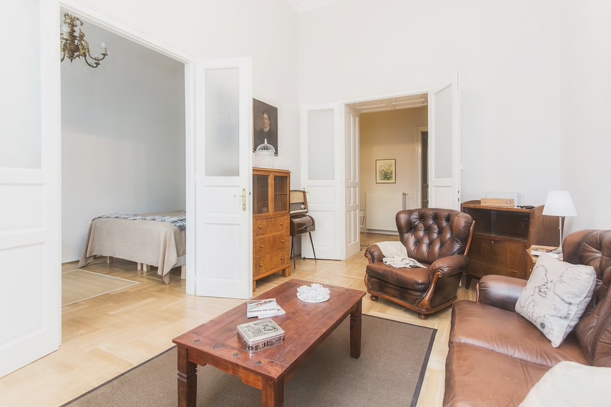 Welcome to my stylish, newly renovated spacious apartment in the middle of the Jewish District. Ideal choice if you would like to stay in the bustling downtown while still in a peaceful and a calm place. Central location with excellent transportation within the city ; Bus 100E - direct public transportation from the Airport is within some minutes proximity also.