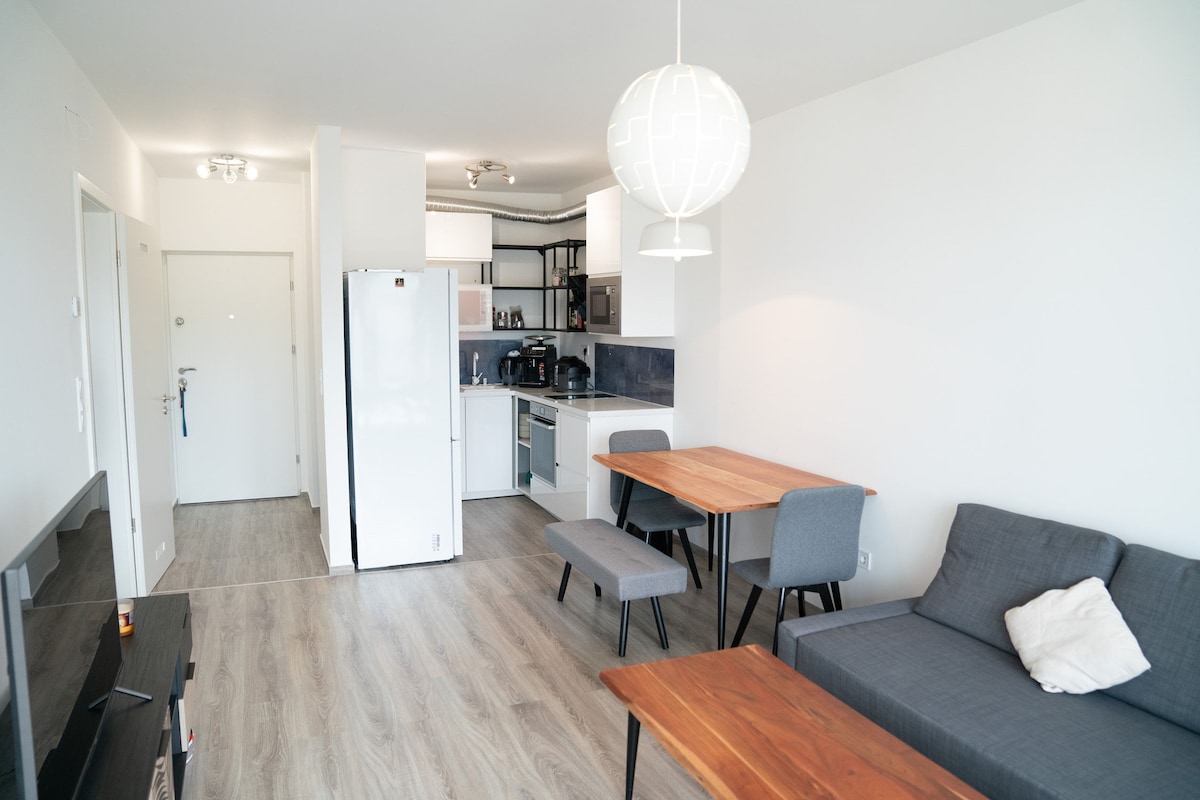 A brand new stylish apartment is waiting for you at your next visit in Hungary. In a totally new building (built in 2021) with perfect location, garage, elevator, sunny streetview and roofed balcony on a high floor. Close to major transportation hubs, historical sights, attractions, museums, restaurants, ruin pubs and clubs. Baby package-10euro/night. Including bed, chair, tub and cutlery.