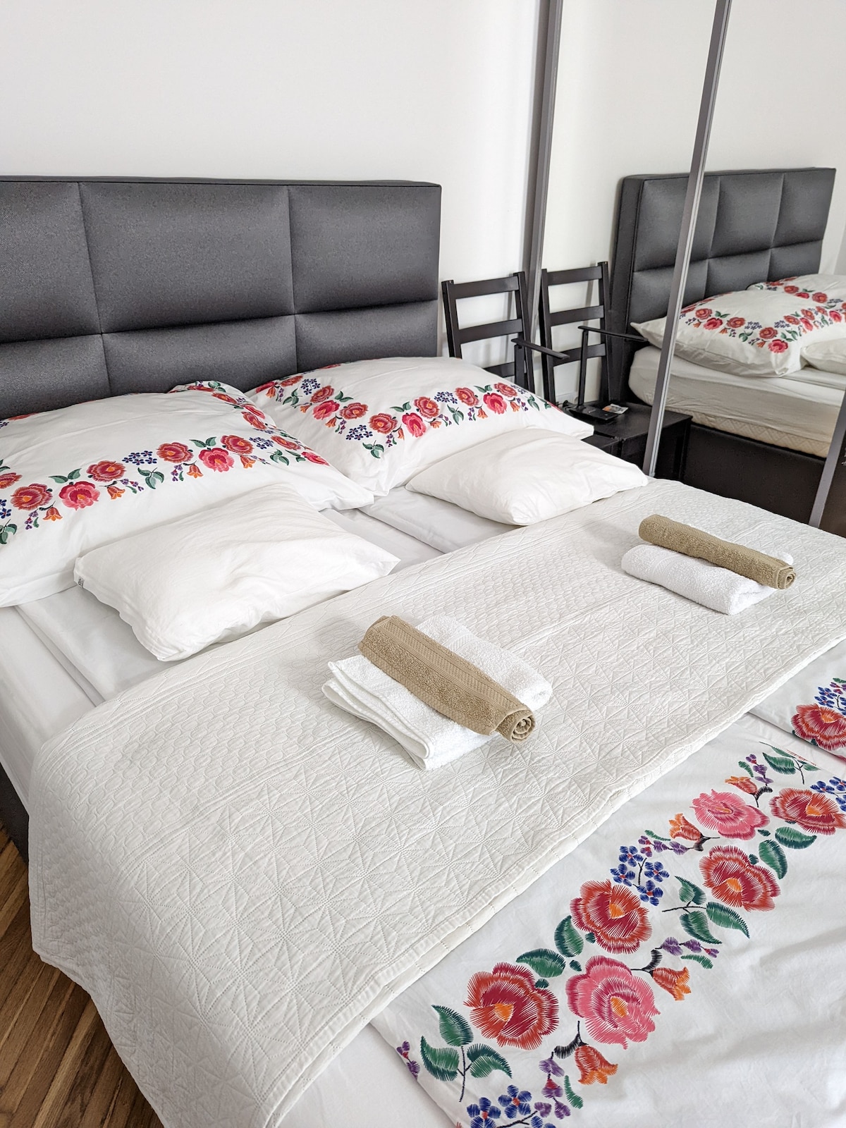 The whole place was renovated and designed with special care, having you, the guests in mind primarily. Anywhere you go, it is within reach: sights, restaurants, shopping, public transport. A calm hide-away place in the middle of a lively neighborhood. The best combination, isn’t it? The safety of our guests has always been a priority, but the pandemic urged us to upgrade our cleaning and disinfection protocol. The flat has an absolutely stunning view facing the Synagogue.