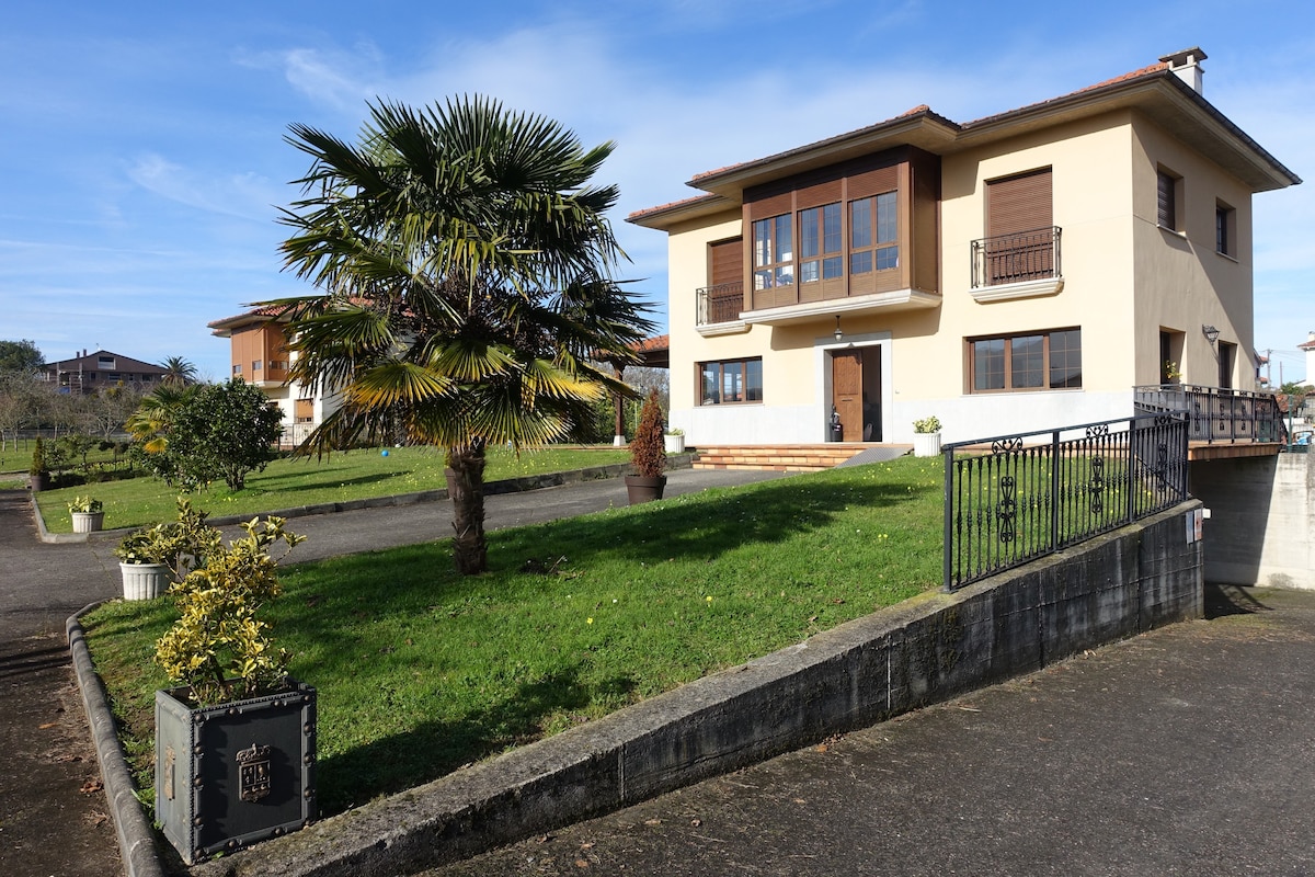 Preciosa casa entera, con vistas espectaculares. Completamente amueblada. 2 habitaciones de matrimonio y 2 habitaciones individuales, 2 baños. Cocina con microondas ,lavadora secadora y lavavajillas. Gran salón comedor con chimenea. Perfecta ubicación, a 10 km de Avilés y Luanco. Playa de Xagó a 3 Km
