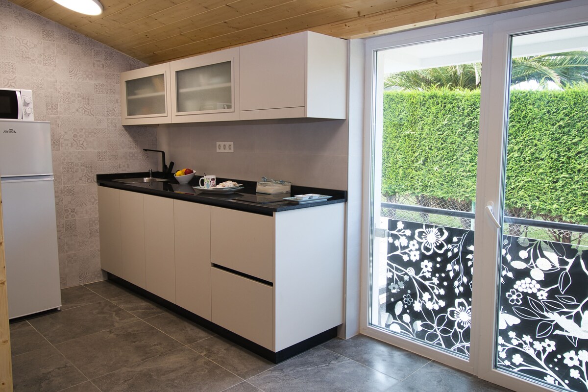 AT1375AS Apartamento en planta baja con jardín y terraza privada con todo lo necesario para el descanso. Cocina moderna totalmente equipada en espacio abierto junto al salón, grandes ventanales con acceso directo al jardín. Baño espacioso con plato de ducha. Habitación amplia con cama extra grande, grandes ventanales y bañera incorporada para tus momentos de relax, salida directa al jardín. Suelo radiante para los días de invierno. Aparcamiento privado.