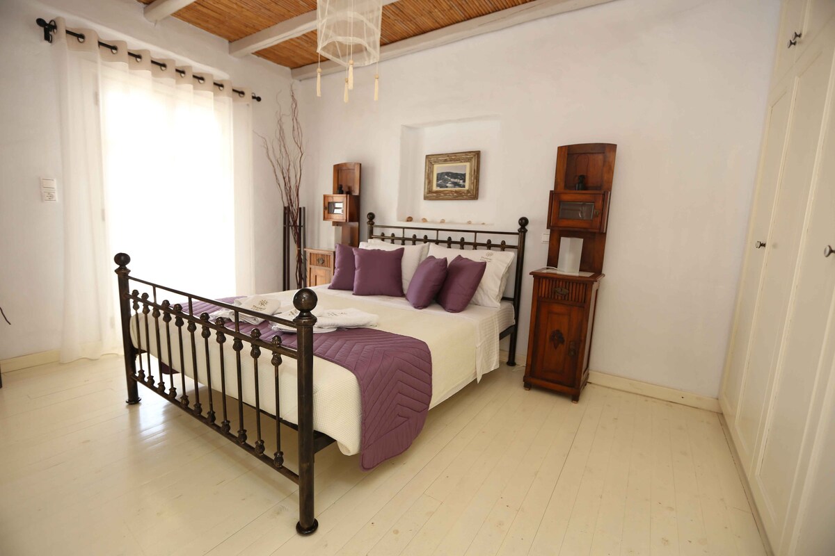 A luxurious and extremely comfortable apartment, with stunning views and unique privacy. It can accommodate 2 people in a king-size bed. Features a bathroom (with shower), coffee/tea making facilities and desk. From the balcony you have a unique view of Astypalaia Town, the main square with the traditional mills and the Venetian Castle. Enjoy the endless blue horizon, the bay of Pera Gialos, the bay of Livadi and the neighboring islands.