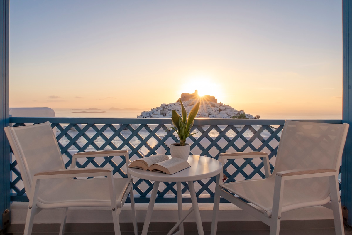 Μείνετε σε έναν αρισΜε ιδιαίτερο αισθητικό προφίλ, έπιπλα φτιαγμένα απο ξύλο, παραδοσιακές εικαστικές παρεμβάσεις, ο φινετσάτος εσωτερικός χώρος , η μεγάλη βεράντα με τη θέα στο ΑΙΓΑΙΟ και το ΚΑΣΤΡΟ θα σας δημιουργήσουν εικόνες που θα μπούν στο άλμπουμ των αναμνήσεων σας.τοκρατικό χώρο που βρίσκεται κοντά σε όλα όσα θέλετε να επισκεφθείτε.