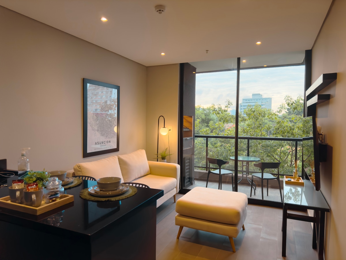 平均评分 5 分(满分 5 分),共 31 条评价时尚的1卧室,带泳池和健身房,位于亚松森