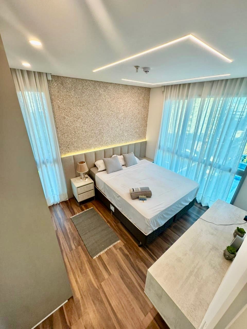 This unit is located in Asunción’s corporate center, just a few steps from the two largest shopping malls, giving you access to the best restaurants and stores without the need for a vehicle. From its rooftop, you can enjoy stunning views of the city, featuring a variety of vegetation and different tree species, as well as the Asunción Bay, which belongs to the Paraguay River.