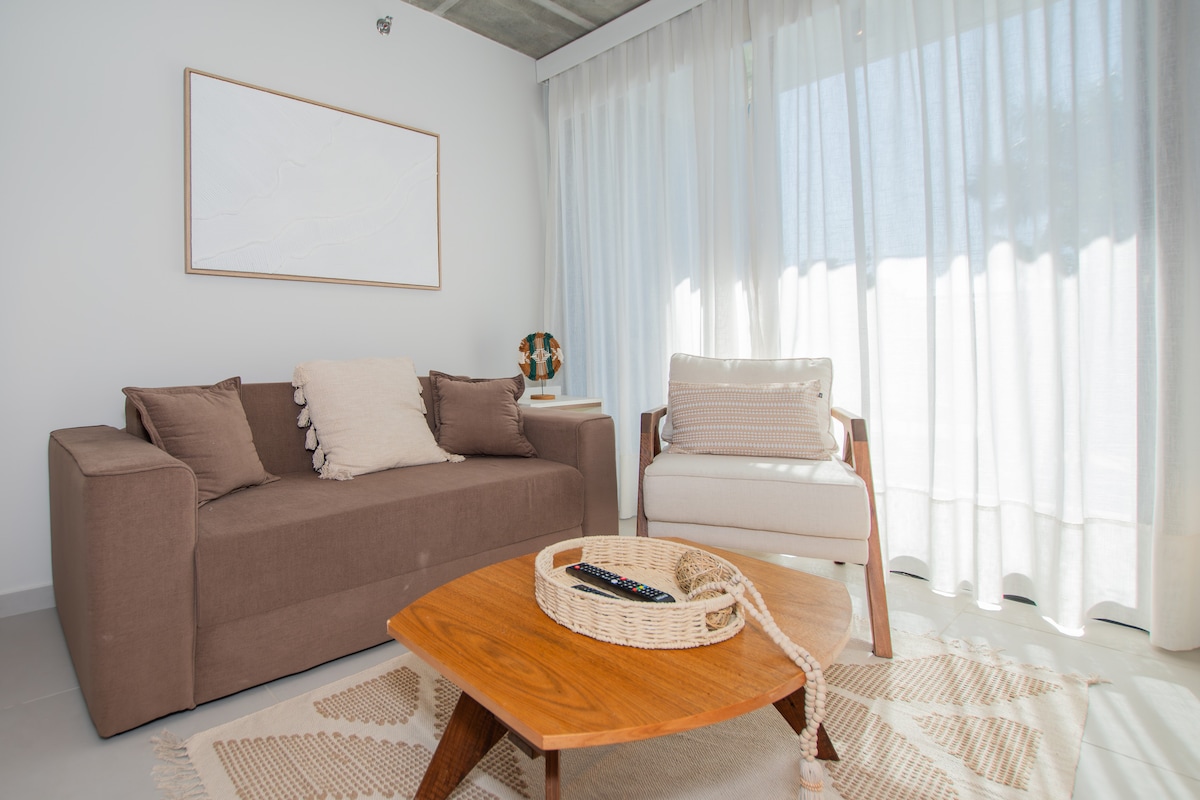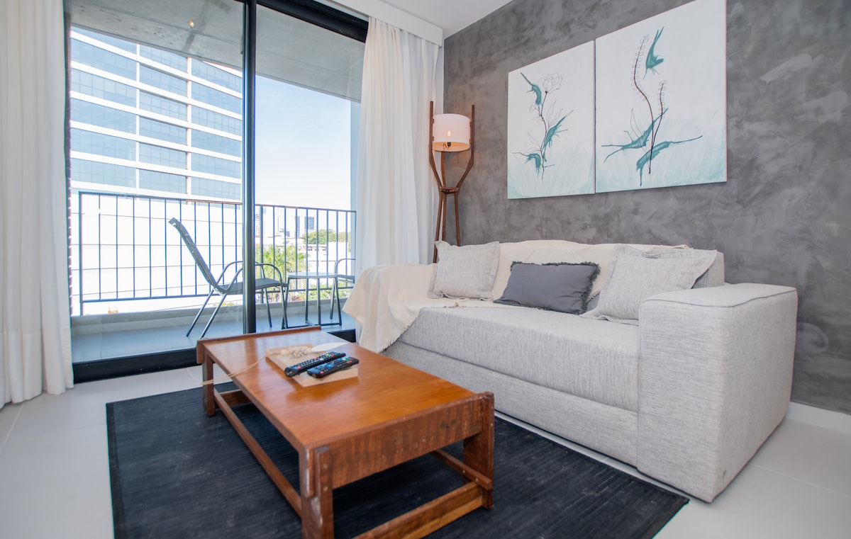 Modern 1BR apartment in prime Asunción location, steps from top shopping centers. Enjoy a full kitchen, and access to amazing building amenities: rooftop pool, gym, movie room, coworking space, and BBQ areas. Designed for short-term stays with 24-hour front desk and a cozy space to relax and feel at home.