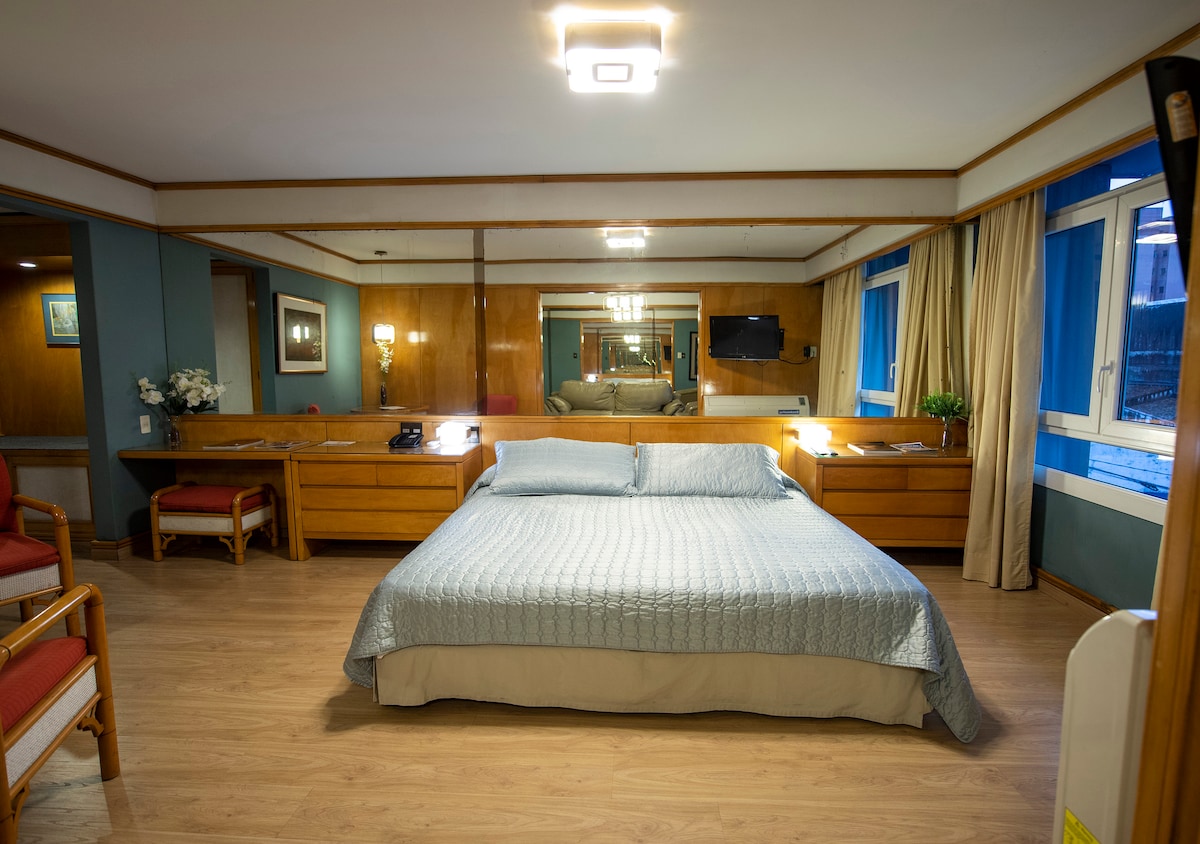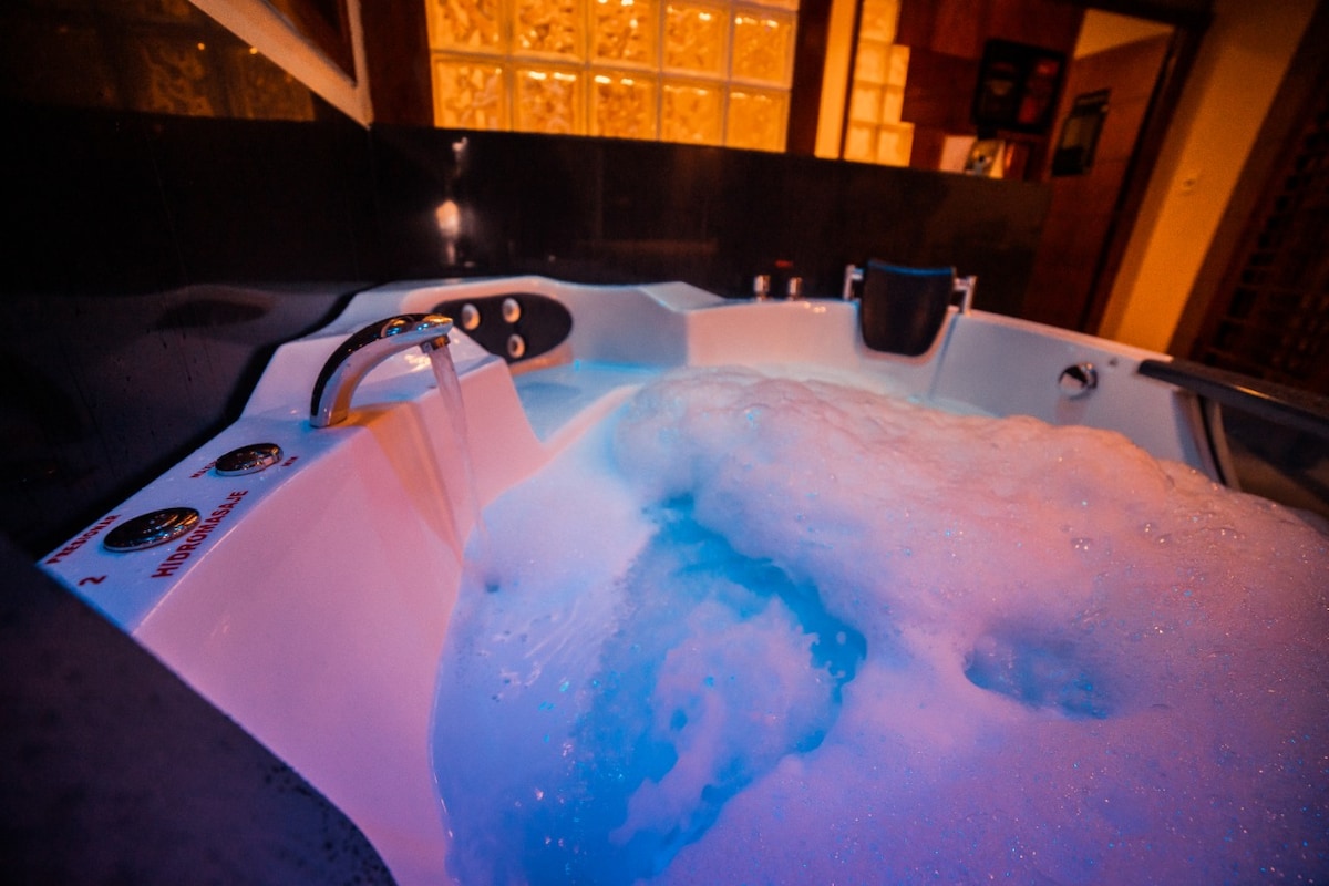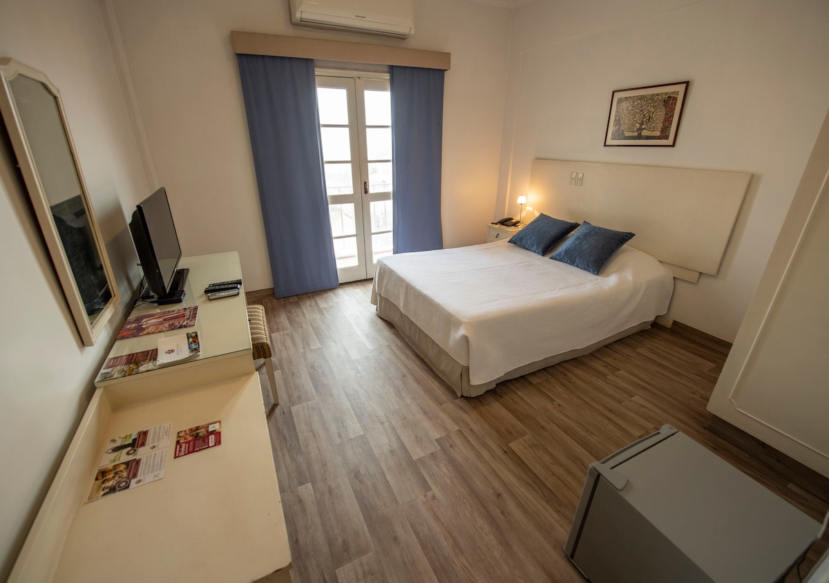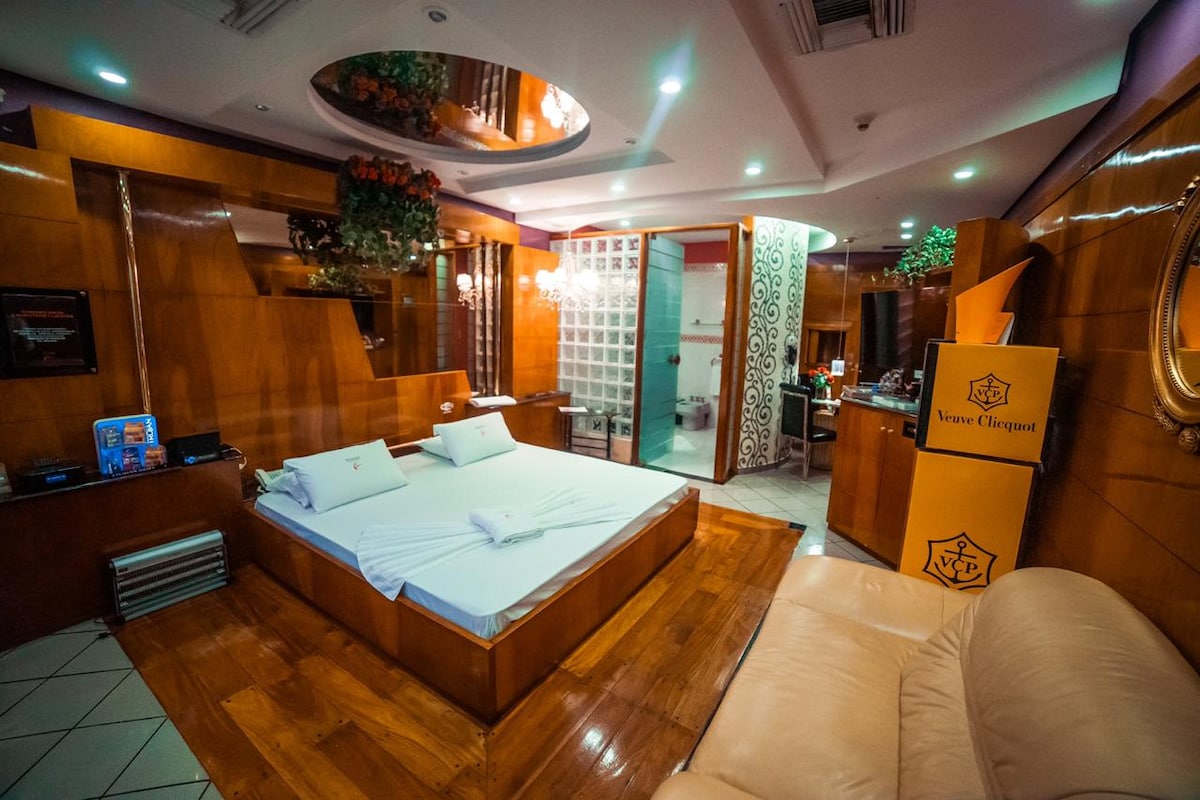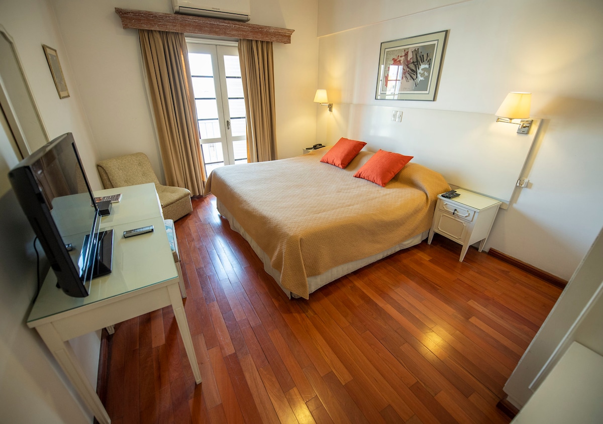 Habitación lujosa con hidromasaje y baño privado. Wifi, Netflix y desayuno continental incluido. También el disponemos toallas y amenities como jabón, shampoo y acondicionador. Disponemos de servicio de restaurant 24hs. A unos cuantos metros, en la misma cuadra se encuentra Burger King, una Farmacia y un supermercado. A unas cuantas cuadras el shopping Pinedo con patio de comidas y muchas atracciones.