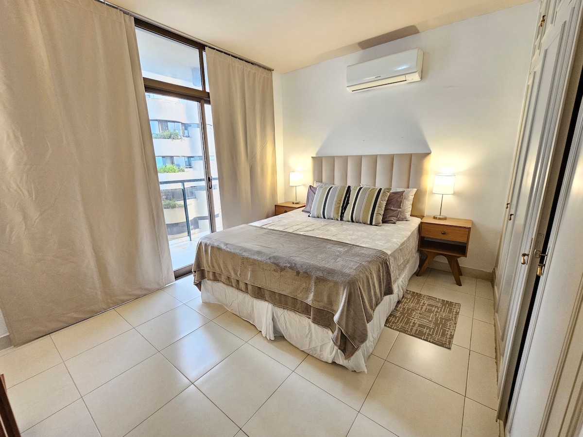 Stay in the best area of Asunción, just steps from Paseo La Galería and Shopping del Sol. This 15th-floor luxury apartment offers panoramic views, a cooled queen bed, 65" NeoQLED TV with sound system, and a fully equipped kitchen ideal for long stays. Enjoy access to spa with sauna, Jacuzzi, massage room, rooftop pool, gym, co-working, reading lounge, playroom, BBQ area, valet parking, and 24/7 security in a premium high-rise.