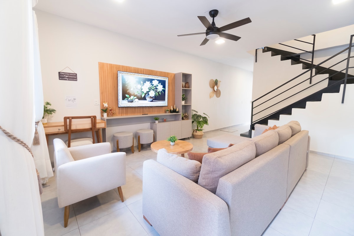 Monoambiente cálidamente decorado con baño privado, pequeño estar con sofá y comedor, placa de cocina, balcón propio. Edificio con guardia 24/7, estacionamiento bajo techo, rodeado de restaurantes, farmacia, tiendas de conveniencia, bares. Smart TV, jabón, toallas,ropa de cama, cocinita, ollas, microondas, A/C split, tendedero de ropa, heladera, cafetera, cubiertos, vasos, secador de pelo, enchufes para USB. Terraza con parrilla bajo pedido, con costo. Alojado en el corazón de Asunción.