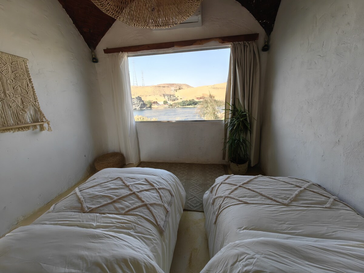 An inspiring homestay located on Heissa Nubian Island. The room offers two comfortable single beds and a calm space ideal for grounding. Guests can enjoy shared spaces including a patio, a library corner, and a terrace. Breakfast and herbal teas are prepared using seasonal ingredients and herbs grown in the house garden. A shared kitchen and bathroom with the host who lives on site to support guests and enhance their stay with local expertise. Couples or Female guests only.