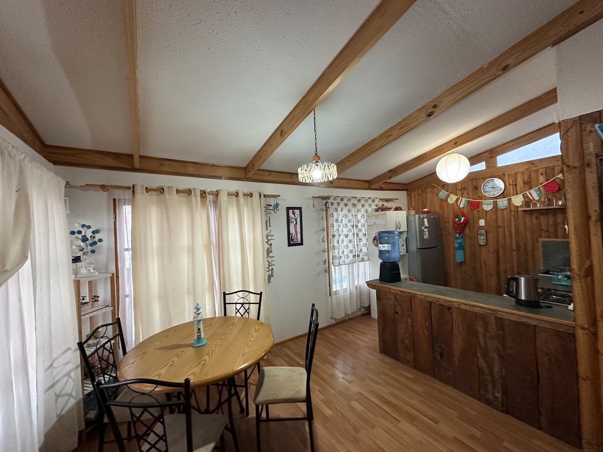 Decoración 100% rústica, construcción en madera al igual igual que terminaciones ,etc. Solo a metros del mar y hermosas playas de arenas blancas. La cabaña está full equipada para una mejor estadía.