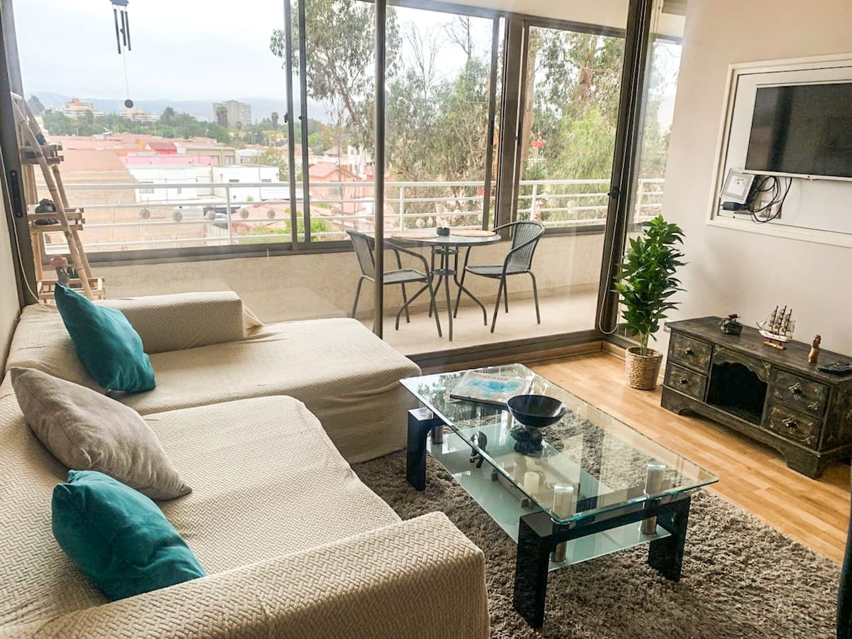 Relájate en esta escapada única y tranquila. Ideal para descansar o trabajar, todo nuevo y de buena calidad, inmejorable vista. Estacionamiento propio. Condominio tranquilo conserjería 24 horas. A 1 cuadra del Casino Antay, 2 cuadras del Estadio Regional (ideal para asistir a los partidos , puedes ir caminando) Supermercados y Farmacias. Cercano a playas hermosas de aguas cálidas y paisajes maravillosos, como Bahía Inglesa, Playa La Virgen, etc.