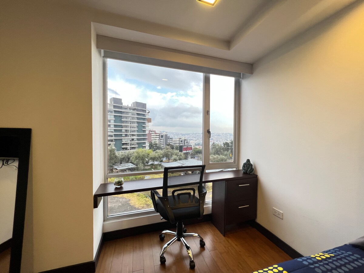 Cama King, colchón y almohadas nuevos y confortables, sábanas súper suaves. Dos televisores gigantes, electrodomésticos nuevos PISCINA temperada, sauna, turco e hidromasaje. Impresionante vista 360 desde la terraza, áreas para trabajo, descanso y recreación (por cortes de luz está sujeto a disponibilidad) Sector privilegiado y seguro, con acceso a transporte. Se encuentra a 5min del Teleférico, 20min del CENTRO HISTÓRICO, 45min de la Mitad del Mundo, a 2.4 km de la Carolina