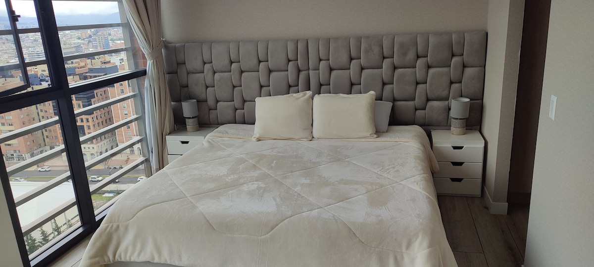 Moderno loft piso 21, edificio nuevo con generador de luz autónomo, ideal para viaje de negocios o para una ocasión especial, vista única de la ciudad. Ubicación privilegiada en el centro norte de Quito junto al parque La Carolina, además a tan solo unos pasos encontrarás centros comerciales e instituciones financieras. El servicio incluye parqueadero, wifi, cine en casa, tina de baño, agua caliente, lavadora/secadora comunal, elementos de higiene, gimnasio y piscina.