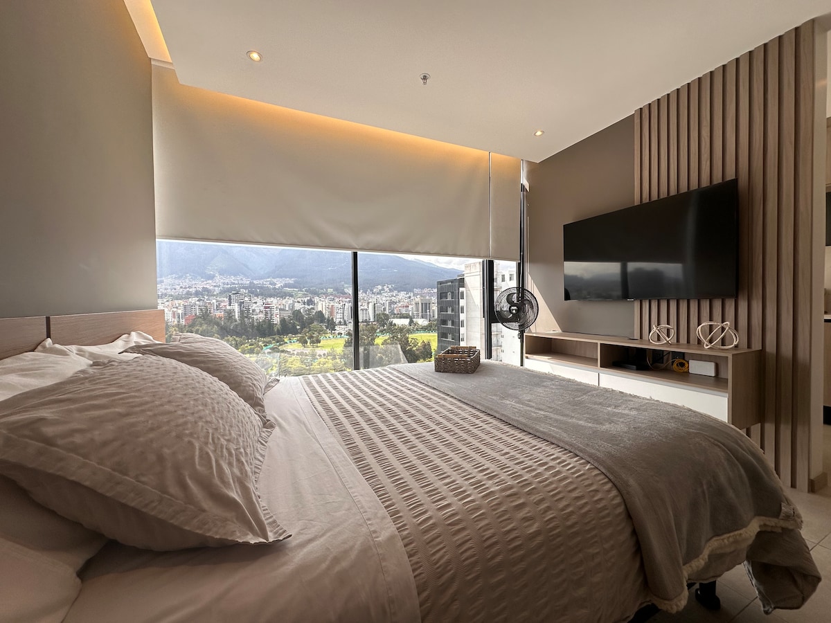 Discover Quito from this modern studio. Located on Av. República de El Salvador, just one block from La Carolina Park, in the exclusive area of the city. Surrounded by restaurants, supermarkets, and banks, everything is within reach: • 4 minutes: La Carolina Park • 11 minutes: Megamaxi • 15 minutes: Quicentro Shopping The studio offers high-speed internet and a dedicated workspace. The building features a pool, jacuzzi, sauna, steam room, gym, and 24/7 security. We speak English if needed.