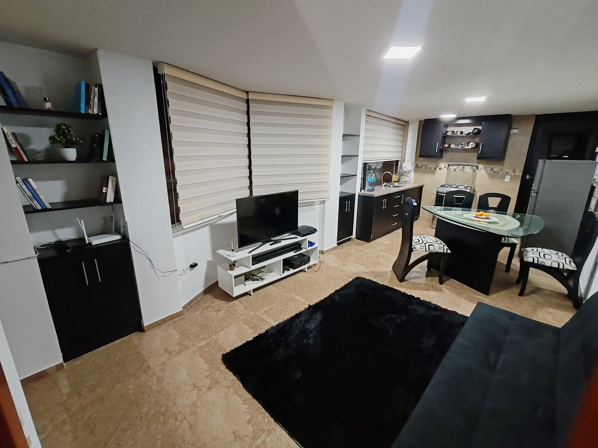 Modern and functional suite in the heart of La Carolina Park, one of the most strategic areas in Quito. Ideal for business travelers and long stays, featuring private parking (unique in the area) and self check-in. Includes 300 Mbps high-speed Wi-Fi, fully equipped kitchen, sofa bed, and private bathroom. Efficient, comfortable, and secure space with immediate access to financial centers, restaurants, and essential services.