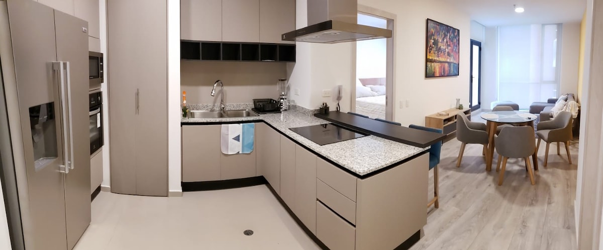 We are located 3 blocks from La Carolina Park and the same distance from Metropolitan Park. From the airport, the drive is 40 minutes. Downtown Quito is 5 km away (17 minutes), and the Middle of the World City is 26 km away (40 minutes). Free parking, 24-hour reception, and free Wi-Fi. In the apartment you will find: 2 bedrooms 2 bathrooms living room equipped kitchen, dining room, washer and dryer 2 flat-screen Smart TVs 24/7 security