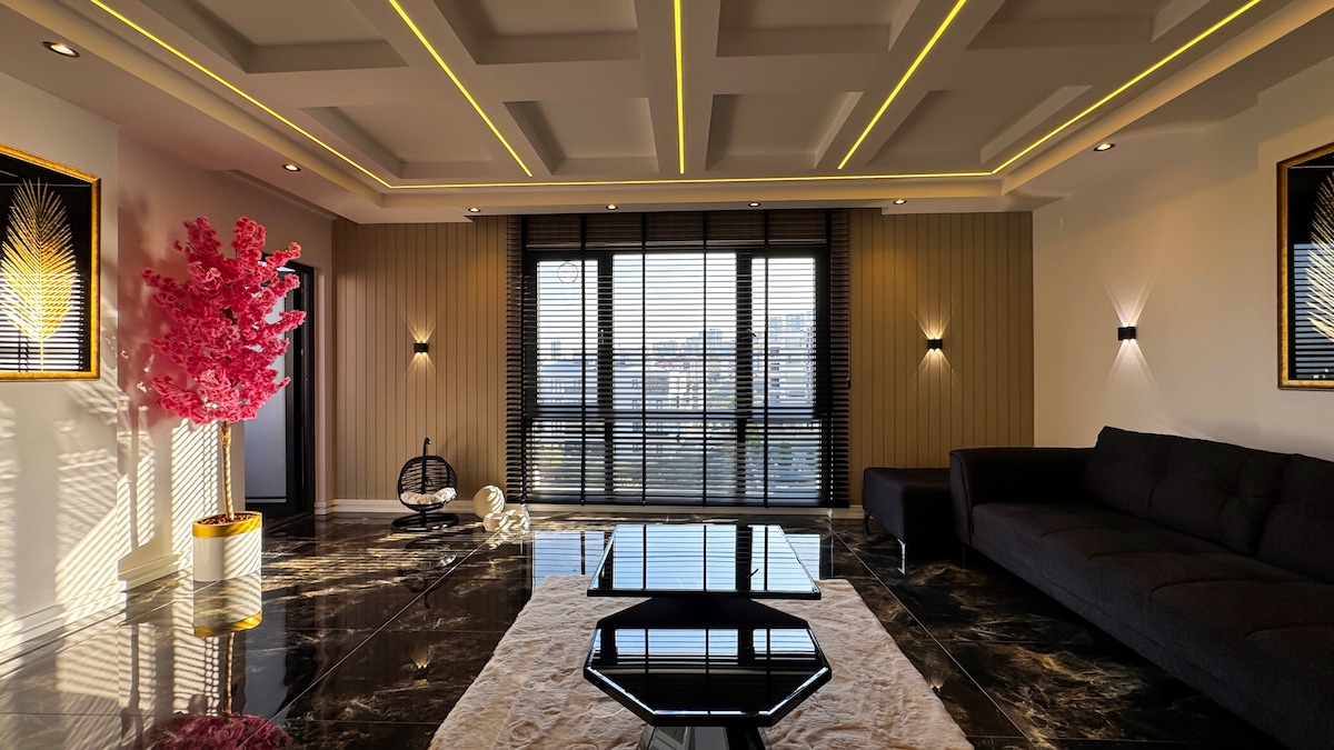 Evde herşey eksiksiz sıfır eşyalardır, şık mekânda arkanıza yaslanın ve rahatlayın.