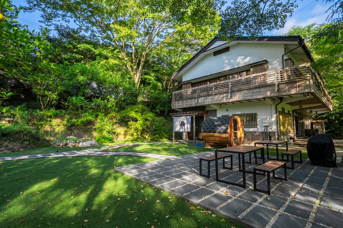 "Noël Hakone Skylight"坐落于风景如画的箱根群山之中,其独特魅力在于通过精心设计的天窗欣赏芦之湖的壮丽全景,以及占地4000平方米的广阔庄园。这座超过200平方米的精致建筑,是业主被这片美景深深吸引后,历时一年精心策划与全面翻新的心血结晶。 宽敞豪华的200平方米木甲板可饱览箱根四季变换的绝美景色,配备高品质烧烤设施,让您在清新的山间空气中与亲友共享美食时光。户外设有具有北欧风情的原木桶状桑拿,让您彻底温暖身体后,可以在星光闪烁的夜空下泡在按摩浴缸中释放身心的疲惫。室内则有十和田石精心打造的典雅浴池和品质上乘的半天然温泉,为您带来宁静而奢华的休憩体验。 白天,您会被周围自然环境的翠绿山林和湖水的深邃蓝色所深深吸引;入夜后,满天繁星与静谧水面的绚丽倒影交相辉映,创造出如诗如画、如梦似幻的景象,仿佛时间在此刻完全静止,让人陶醉其中。 别墅内配备现代化齐全的家电和高品质日用品,完美融合了现代都市的便利与深山的宁静祥和。在这片被丰富多彩自然环境环抱的私密空间中,尽情享受远离日常喧嚣、回归本真的箱根时光。