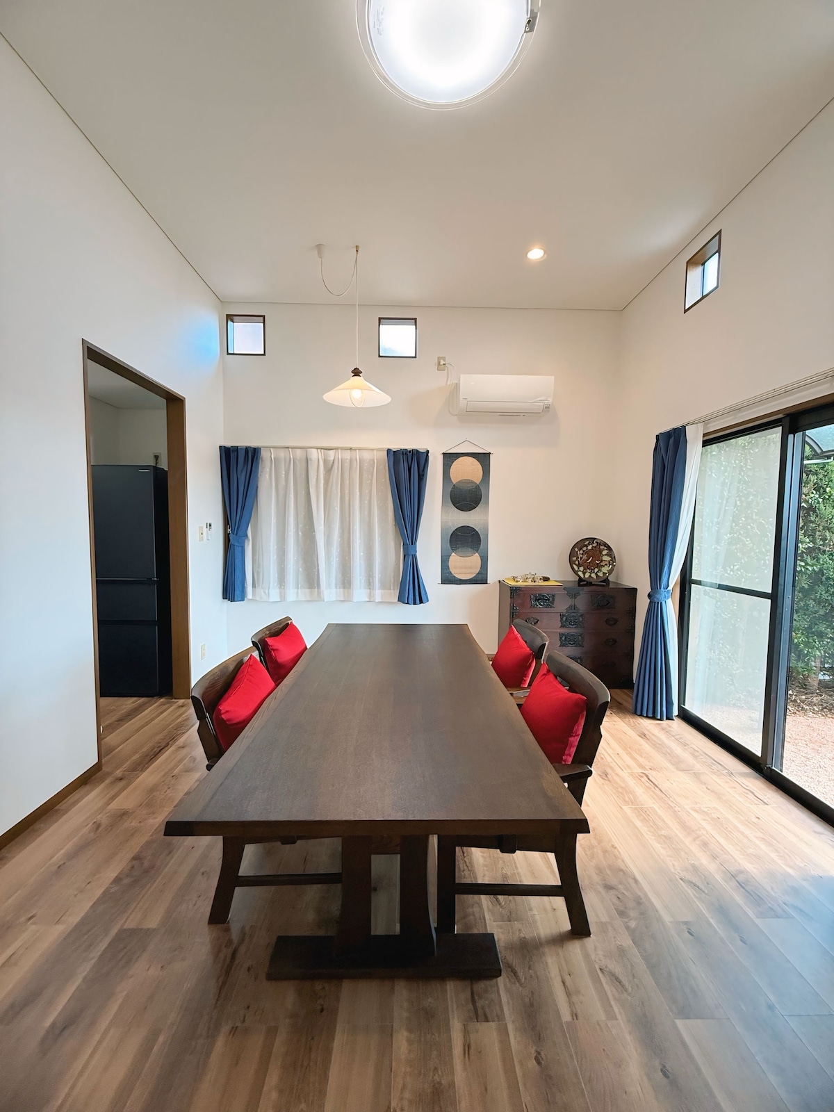 Beautiful 3BDRM holiday villa within Fuji-Hakone-Izu National Park. Comes with a large private hot spring bath, panoramic sea view, projector & garden. Morine provides year-round comfort for relaxation & an ideal base for remote work/holiday. Renovated combining modern Japanese taste with Western comfort. Each bedroom is generously sized & the spacious open-plan kitchen/dining/living area is ideal for getting together. Guests may be greeted by the beautiful blooms of a weeping cherry in spring.