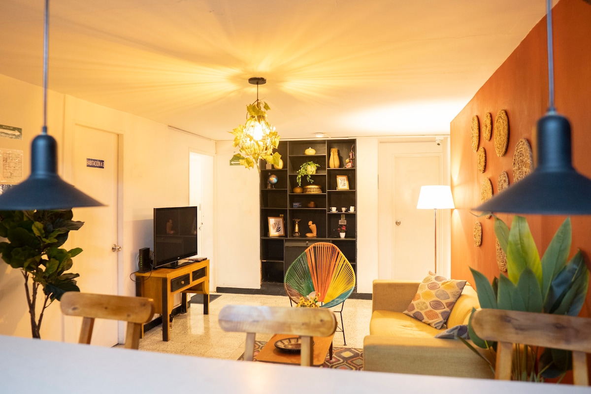 Stay in comfort and privacy in this cozy room featuring a private bathroom, double bed, and ultra-fast 900 Mbps WiFi — perfect for working remotely or unwinding as a couple after a day exploring. Located in Manila, El Poblado, Medellín’s most vibrant neighborhood, you're steps away from cozy cafés, top-rated restaurants, and nightlife in Provenza & Parque Lleras. Just a 5-minute walk to Poblado Metro Station for easy access across the city.
