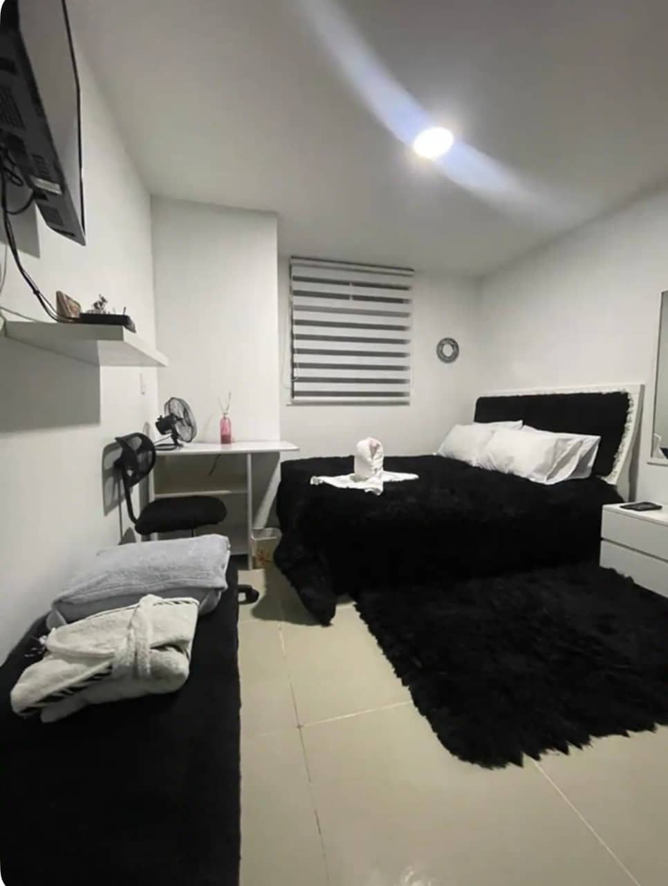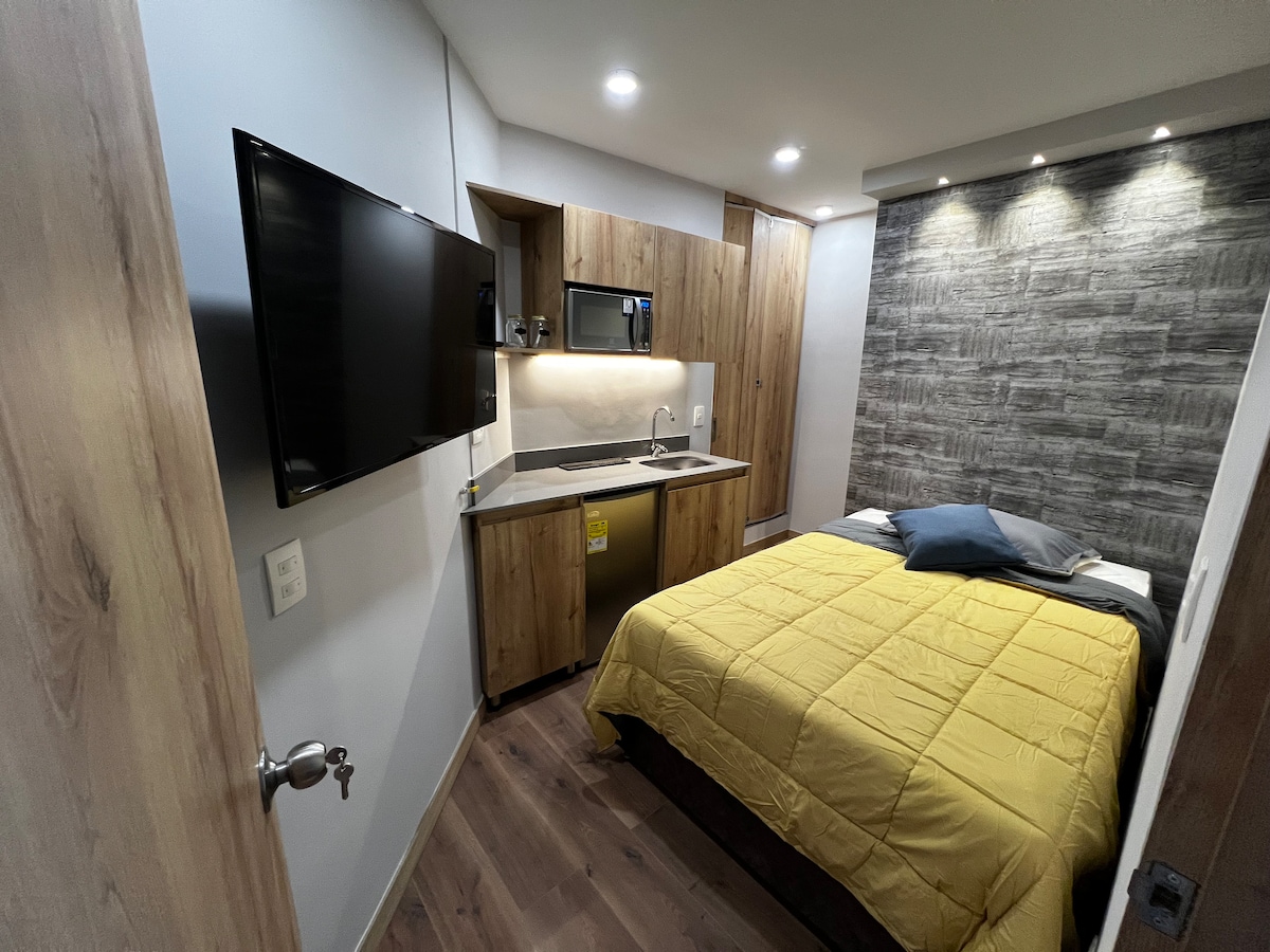 Hermoso aparta estudio en el sector del Estadio, excelente ubicación, ingreso independiente. Con espacio para trabajar (opcional), estacionamiento externo, se aceptan mascotas, cerca a estación del Metro, excelentes vías de acceso, capacidad para dos personas y una adicional, una cama Queen, un sofá-cama, baño con ducha; cocina integral a gas, vajilla y utensilios, nevera y microondas. Televisión, internet de 560 Megas (Varía según dispositivo), lavadora, patio de ropas.