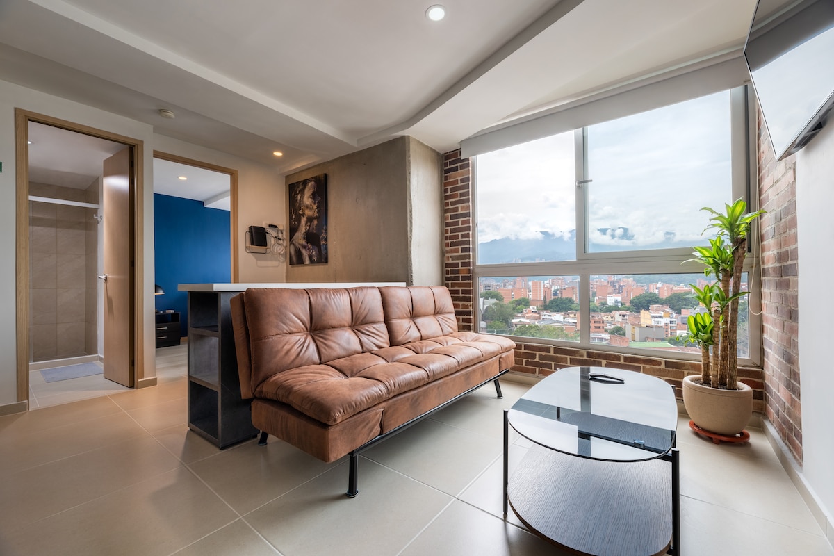 300Mbps FO Wifi. Free Guest. Special place close to everything, making it easy to plan your visit. Fully furnished suite with air conditioning, kitchenette (ice maker, coffee maker, sandwich maker, blender, mini fridge, electric stove, microwave), Work Station with monitor, PS4 (COD, Madden, NFS), Lounge/working area, Gym, Laundry room, and an amazing view. Located in one of the best areas of Medellin, close to all places of interest (Santa Fe Mall, EAFIT, Metro, Parque Lleras, Provenza).