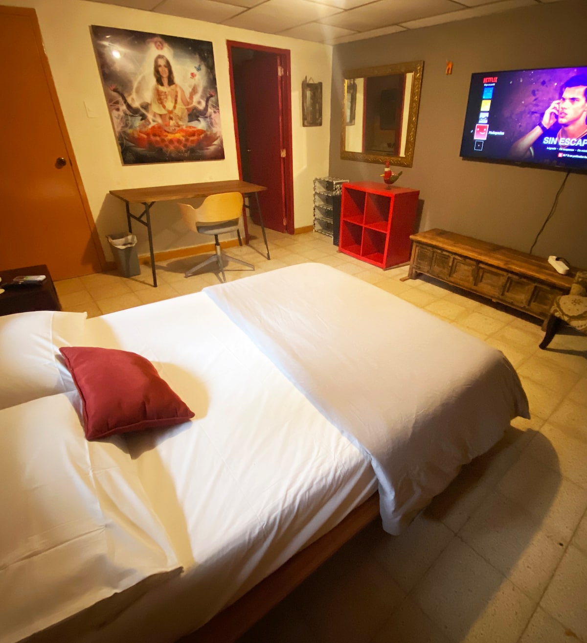 RIVERFRONT -> Dormitorio con baño privado -> Walk Score 90 (a pie de restaurantes, museos, mini market, tiendas de ropa) -> Acceso a la piscina y jacuzzi -> Parking Privado a pocos metros del edificio Extra / (10 dólares x noche) o dentro del edificio (15 dólares x noche) -> Cocina con todo los utensilios básicos (No incluye aceite) -> Lavadora y Secadora -> TV/Netflix/Youtube en Dormitorio -> 10 minutos del Aeropuerto/Terminal -> Ascensores en el edificio -> Recepción y Seguridad 24/7