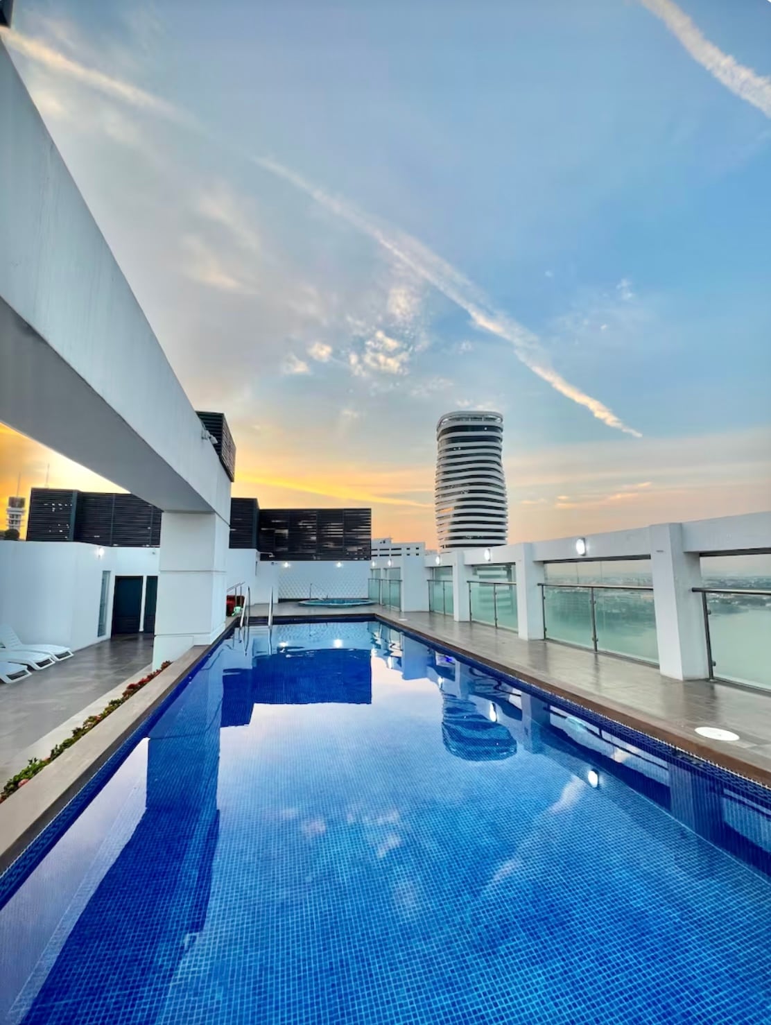 Enjoy the elegance and comfort of our suite in the exclusive area of Puerto Santa Ana, surrounded by excellent restaurants, cafes and outdoor spaces just a few steps away. In addition, you will have access to our social area with a pool, sauna, jacuzzi and gym, with impressive views of the Guayas River so you can relax and have fun during your stay.